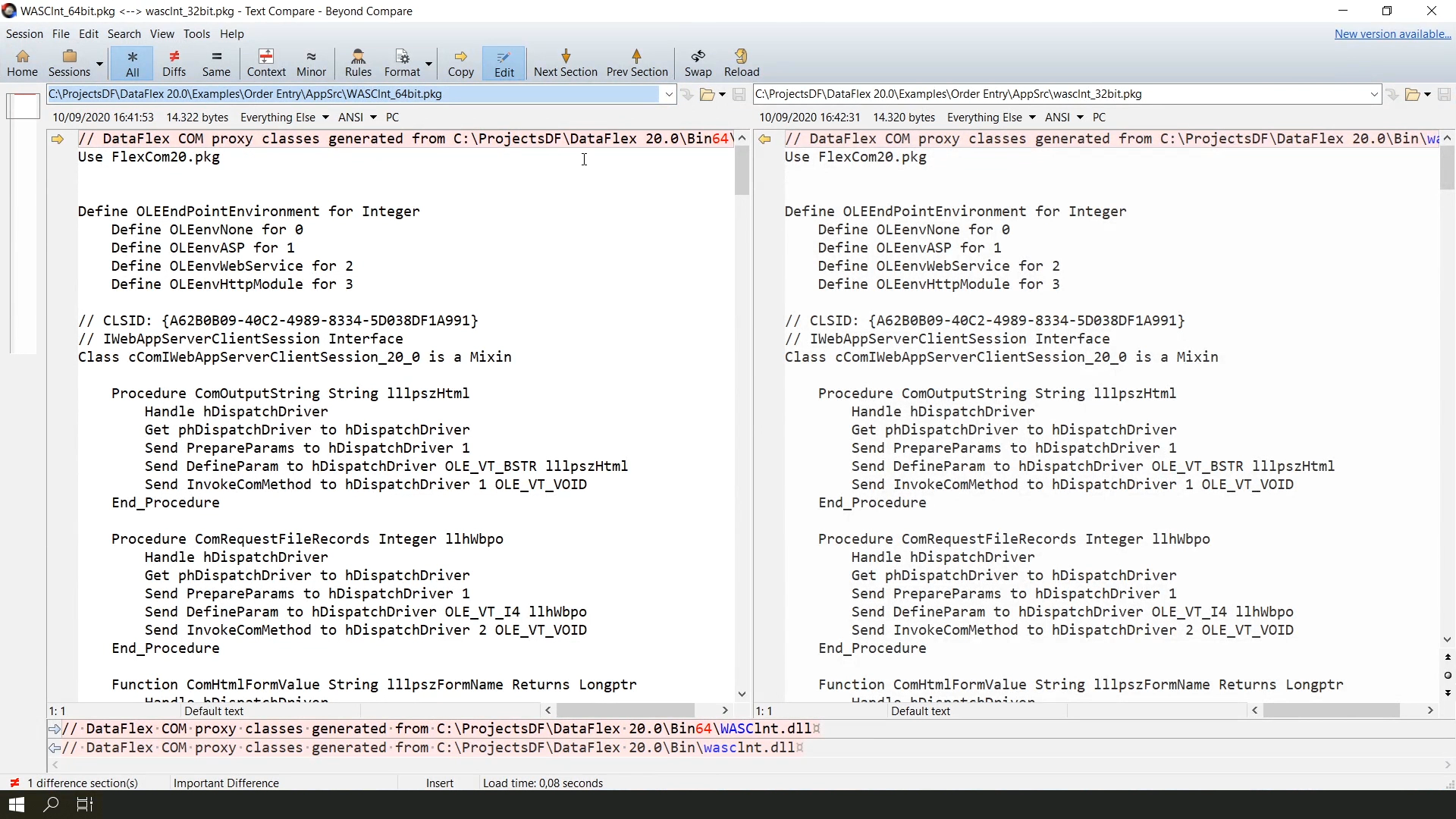 - When the two files are compared, they are identical except for the location of the input COM object.