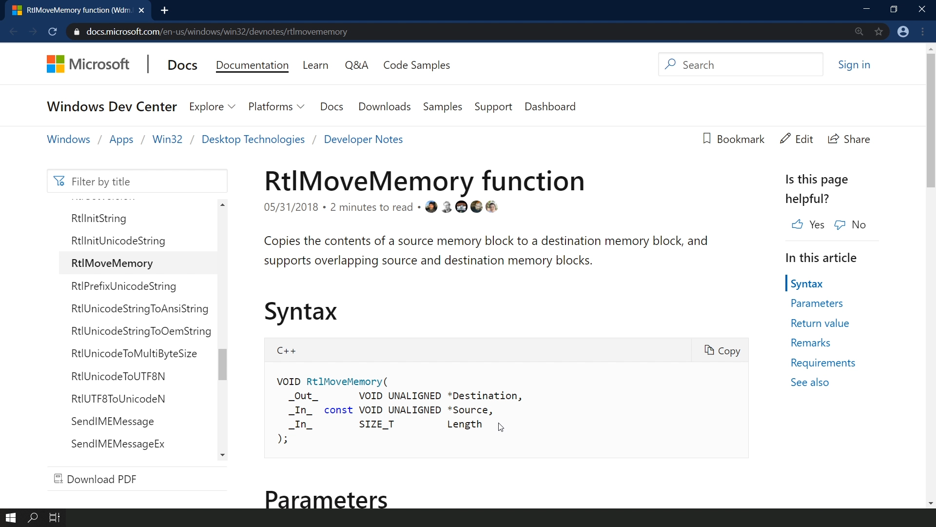 - Is it correct? In the MSDN documentation, two Pointers are expected and a SIZE_T variable. SIZE_T is a platform-dependent unsigned integer type, so a ULongptr needs to be used.