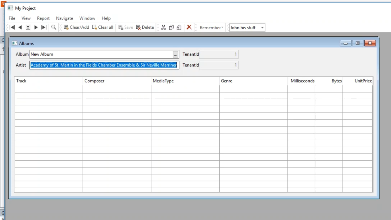 Running the application shows the combo that displays the different tenants that available for selection. Opening the ‘Albums’ view should only show data that applies to the selected tenant.