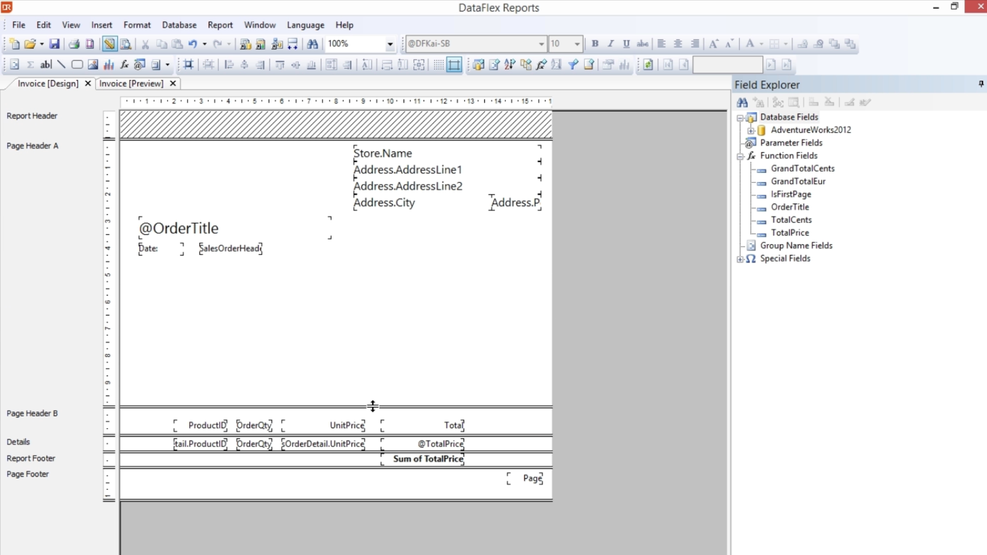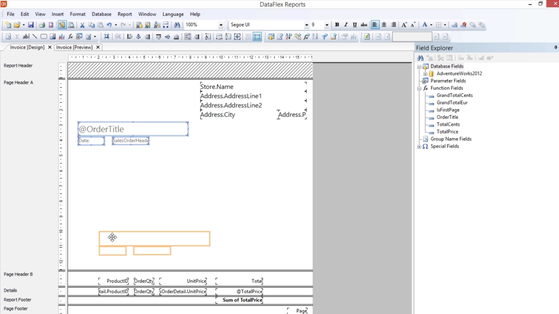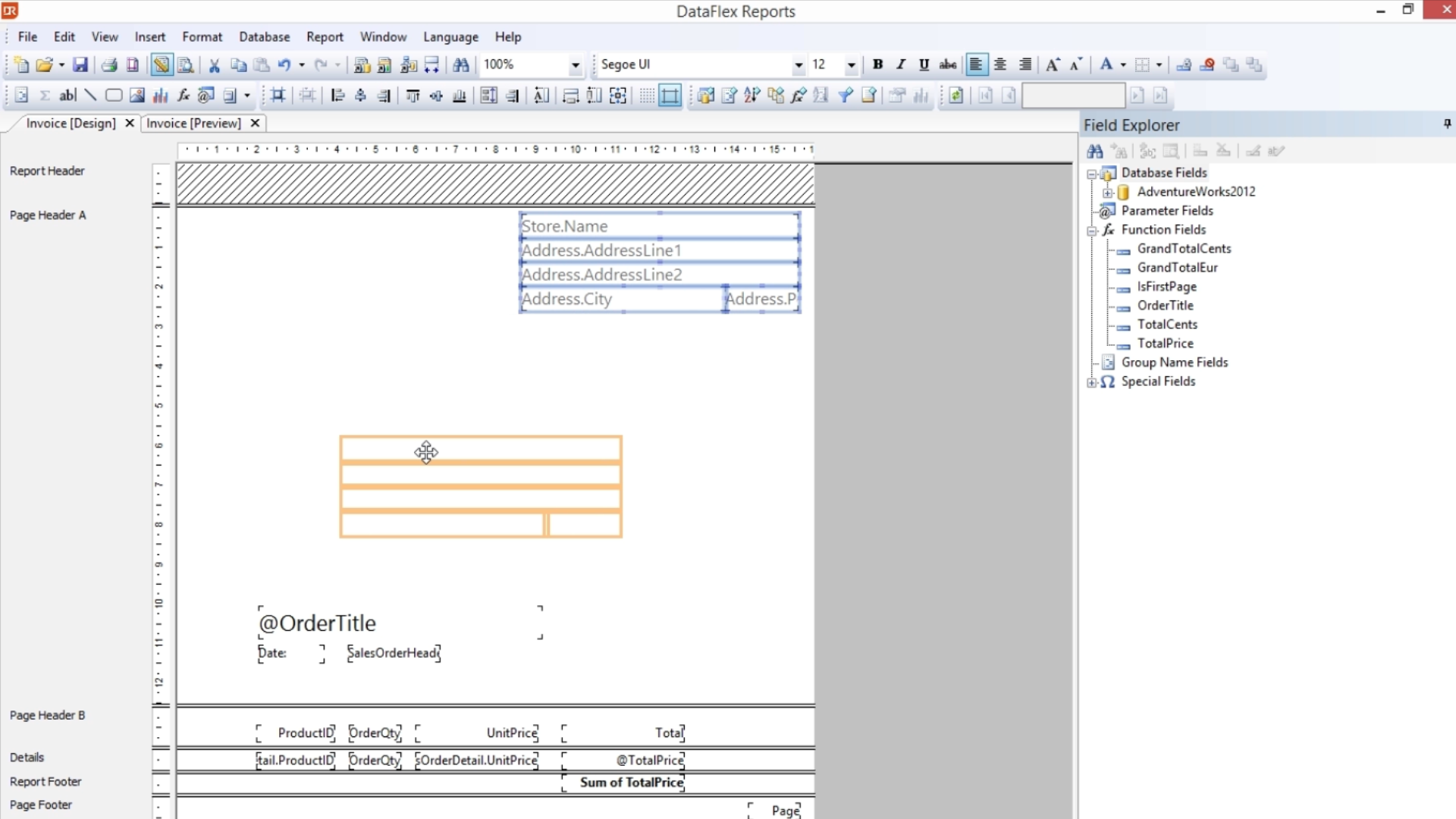 Select and drag the @OrderTitle information and the name and address section to the proper locations.