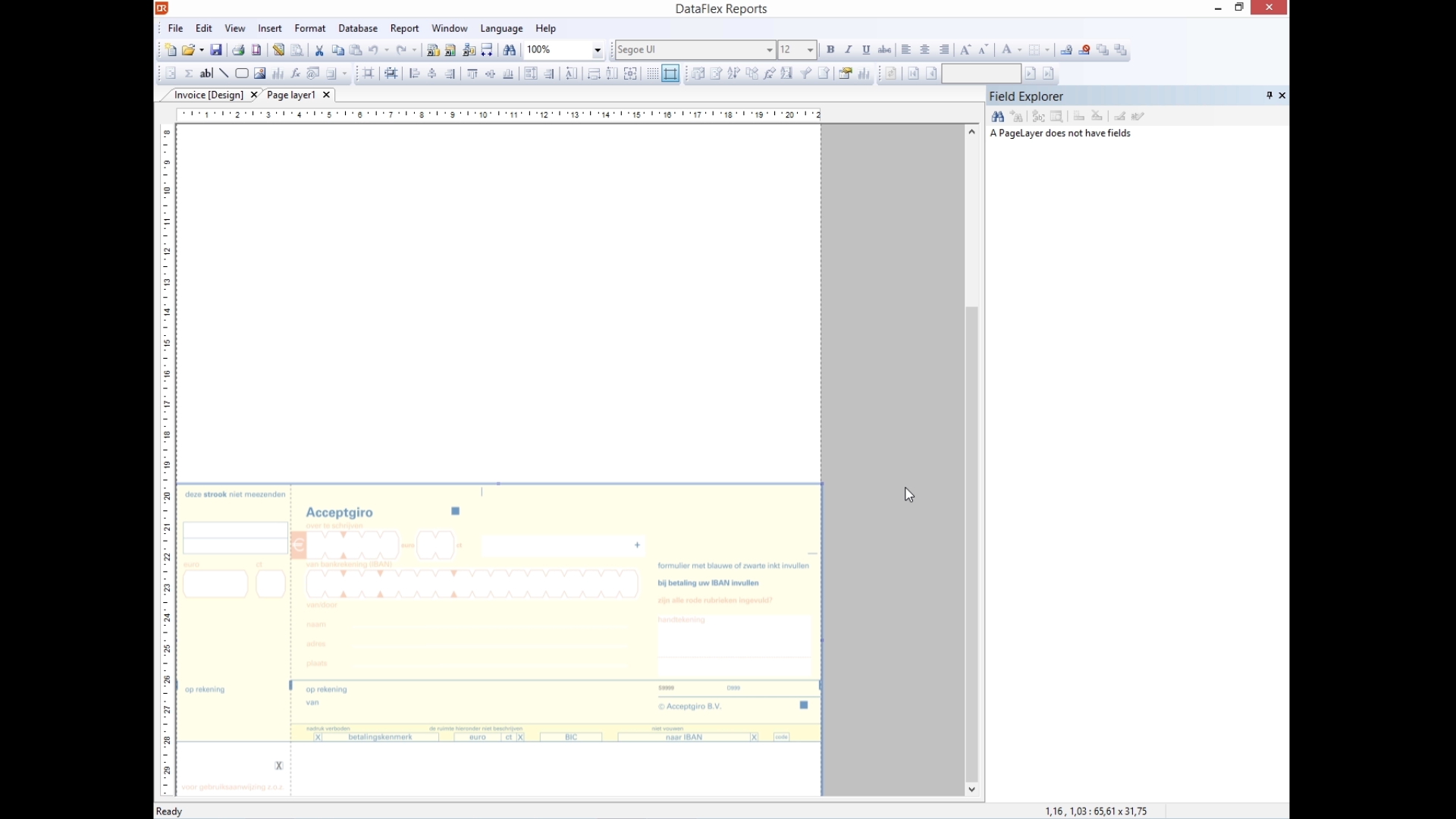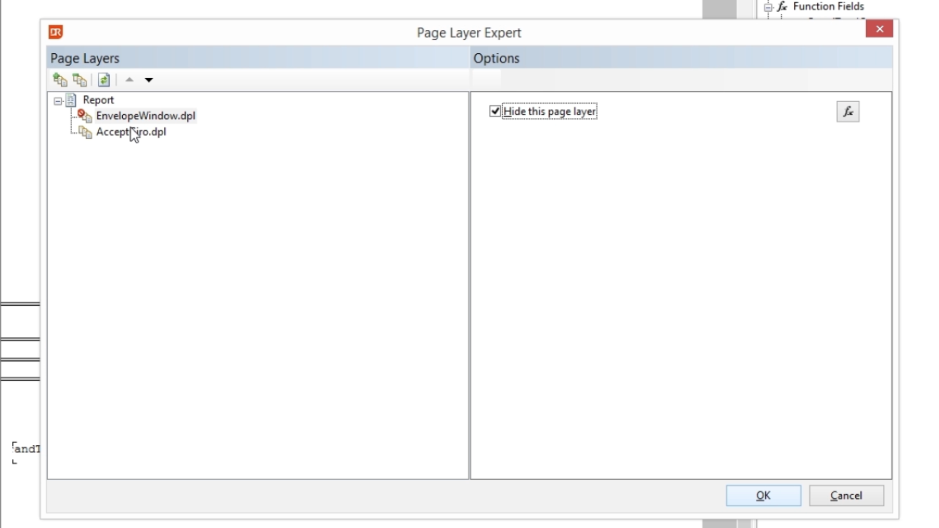 Add the page layer to the report using the Page Layer Expert