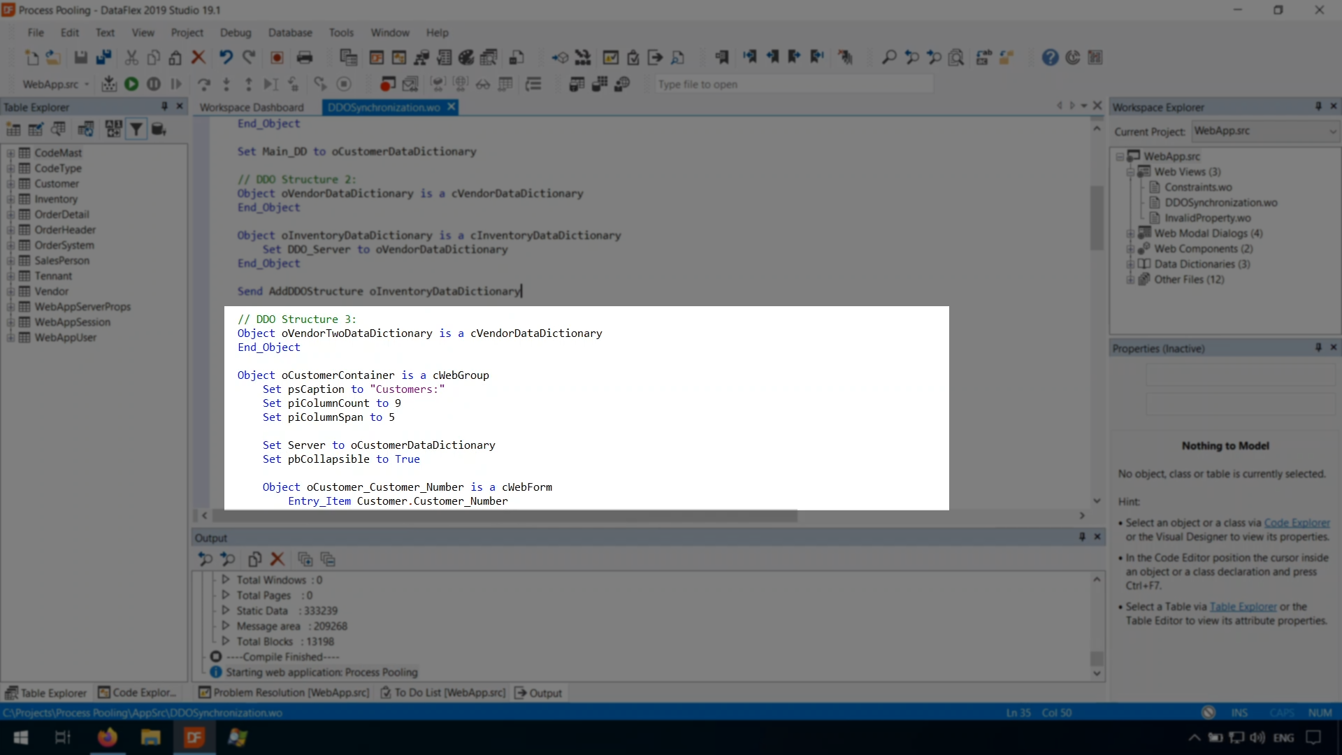 This is happening with the Inventory group because there are three processes in the pool. Each has a different current record because the Data Dictionary structure is not synchronized. By default, the Framework only synchronizes the main DDO structure of a view, which is the Customers group in this example.
