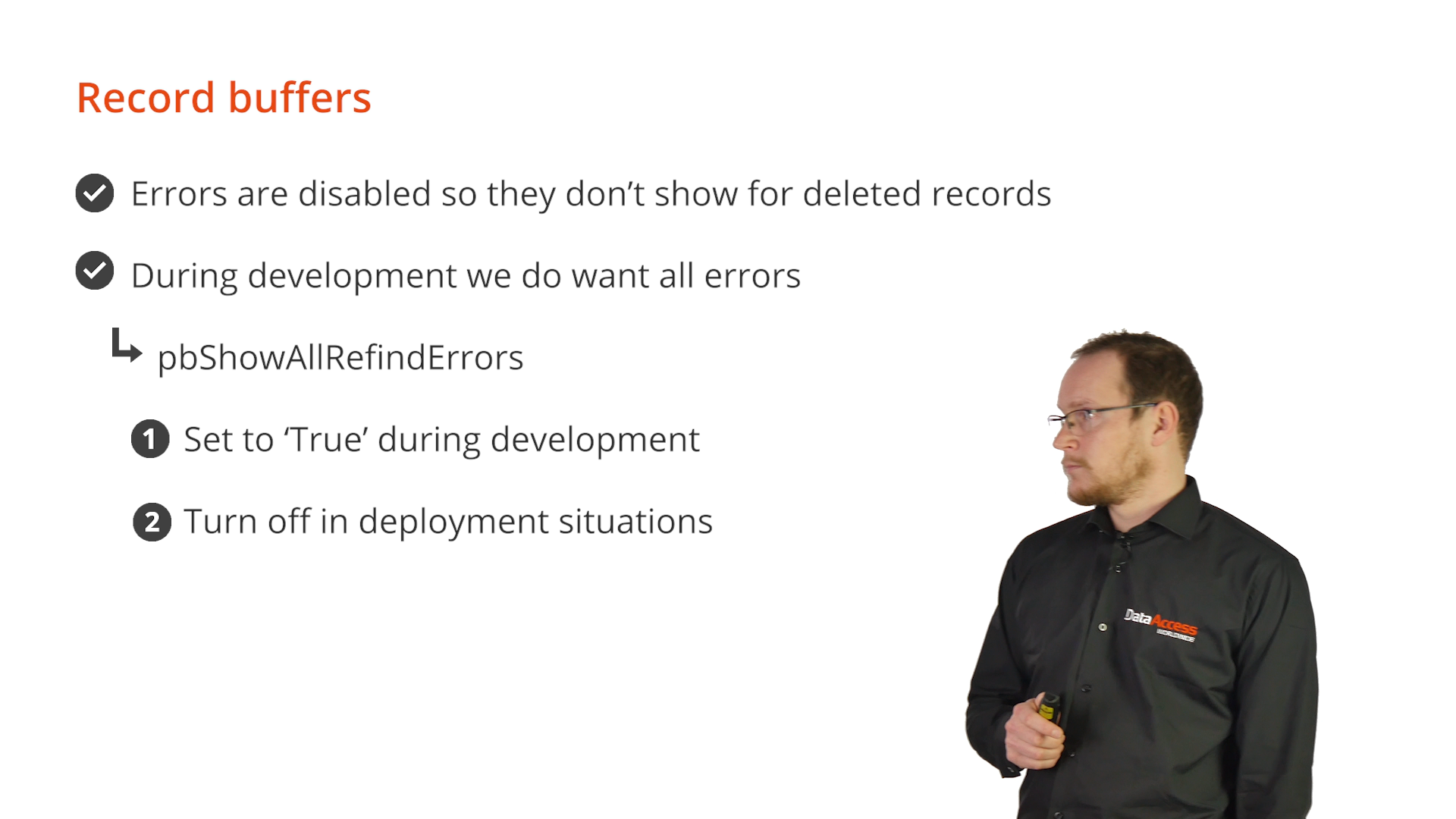 Errors are not always shown in live apps, but during development it is important for all of the errors to present because it often points to an issue within the app. pbShowAllRefindErrors property can be set to ‘True’ on the WebApp object during development, so that issues with the DDO synchronization can more easily be identified. This causes all errors to be shown when a record is not found. It should be turned off when the app is deployed.