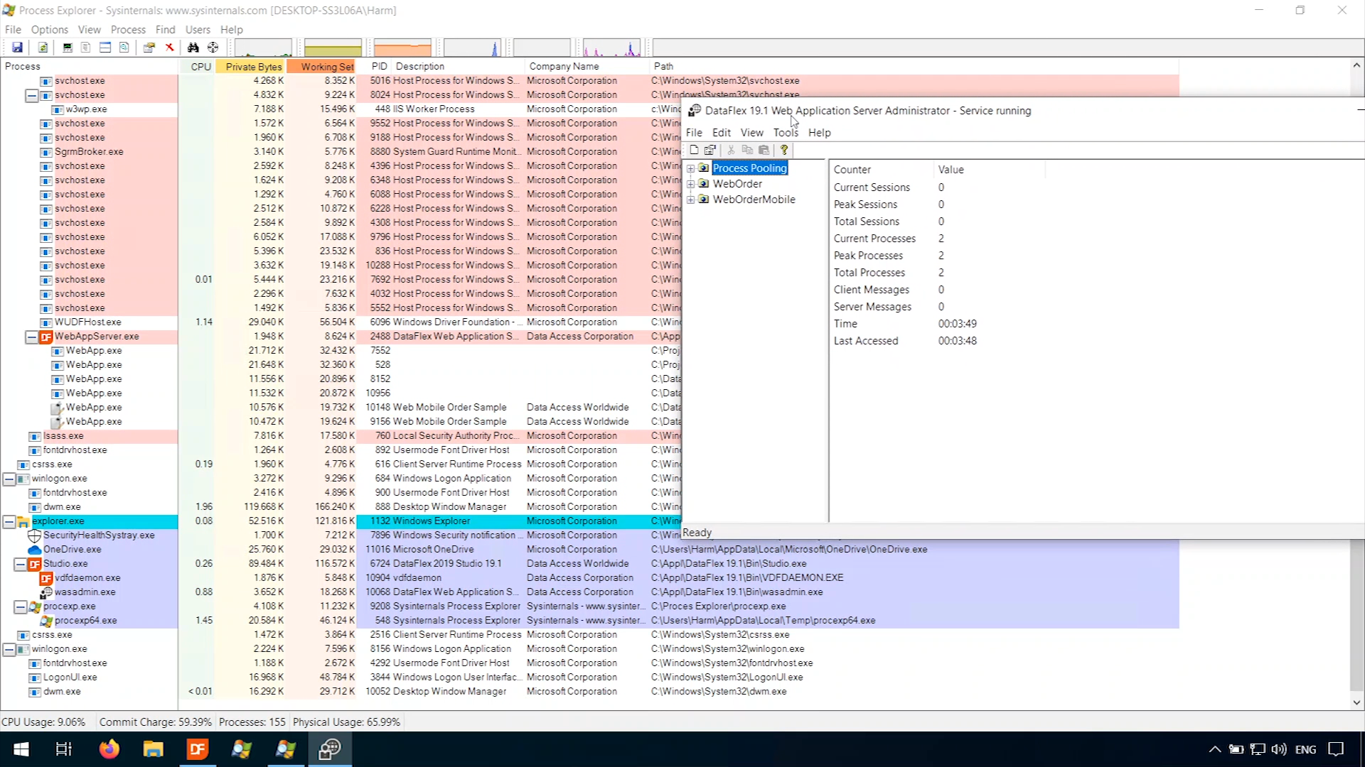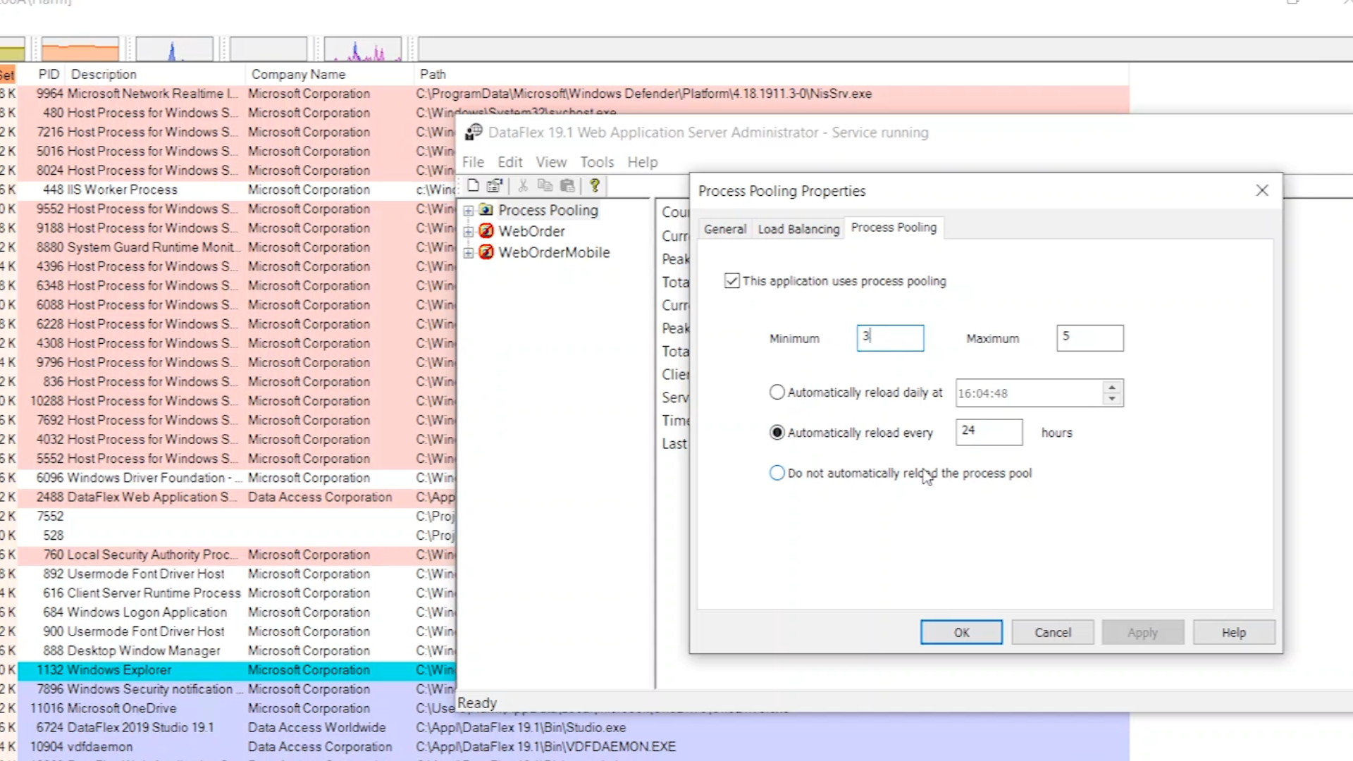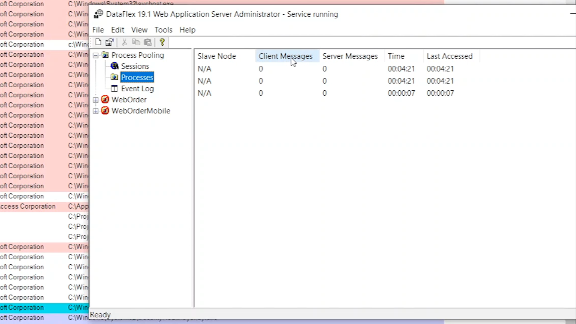 - Disabling the WebOrder and WebOrderMobile applications from the Administrator also stops the processes in Process Explorer.