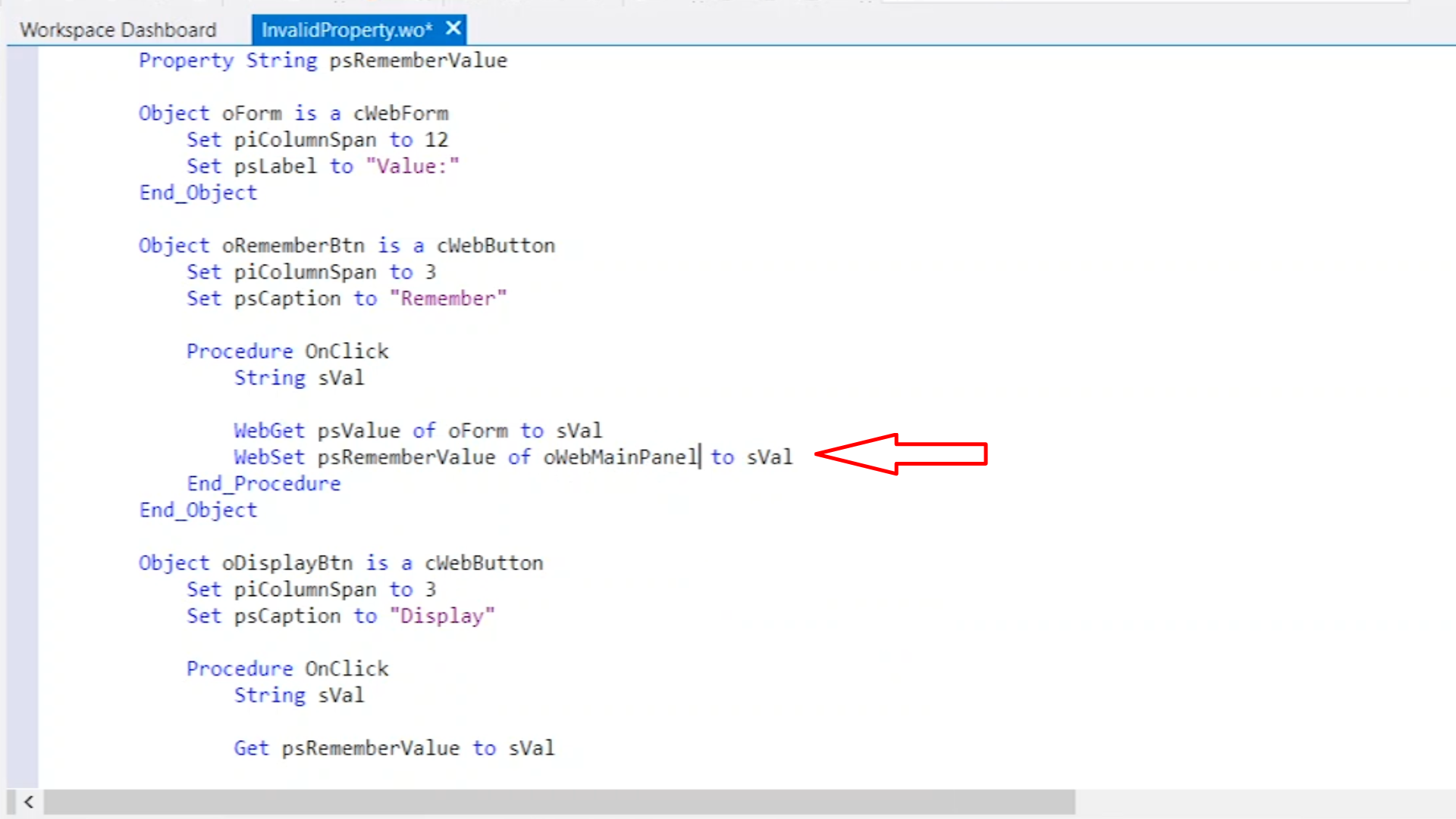 - WebGet psRememberValue of oWebMainPanel to sVal