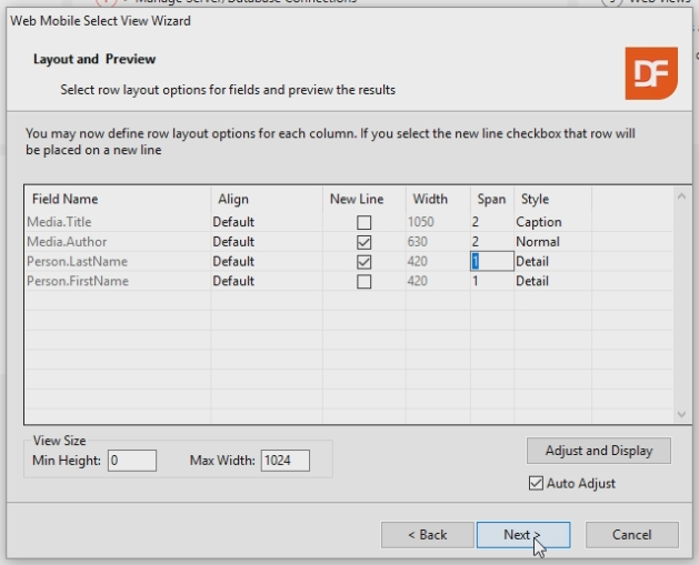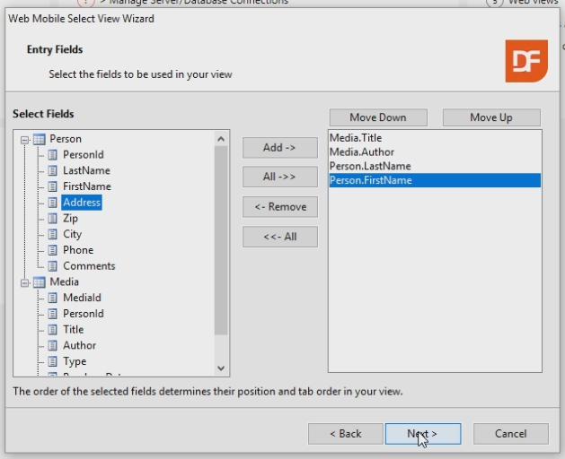 On the next page we can select Media Fields as well as Person fields. Select the following Media Fields: - Title - Author