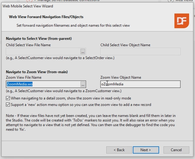 The Media Zoom View we created doesn’t work without a Media Select View. In this lesson we will create the Media Select View using the wizard.