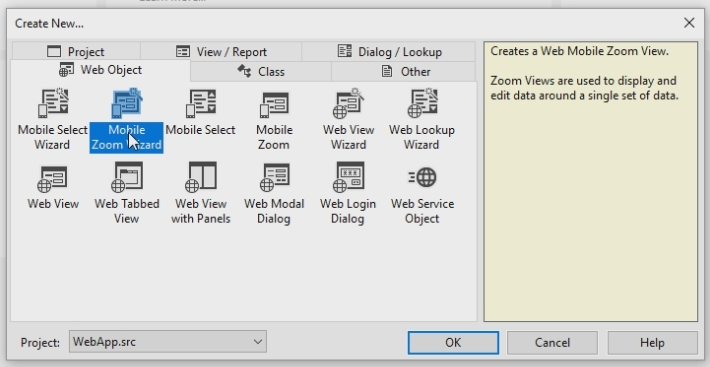 Click Create New… and choose the Mobile Zoom Wizard.