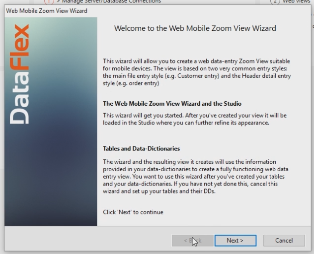 When the Wizard has started it will show some basic information about the Web Mobile Zoom View Wizard.
