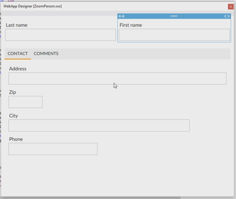 The View object is called "oZoomPerson". In this View Object is a panel called oWebMainPanel. In this Panel are the LastName and the FirstName. The oWebTabContainer contains Page1 and Page2.