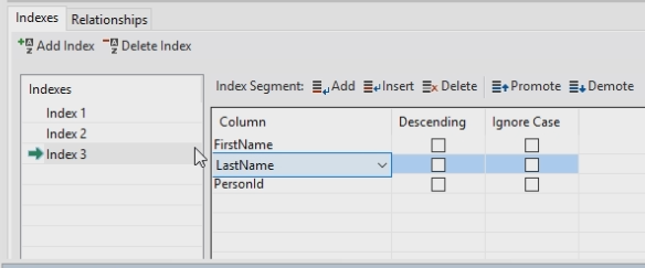 - All field have the proper Index, except FirstName. The reason to why it has Index 2 is because it's a segment of that Index. We will change it's Main Index to Index 3.