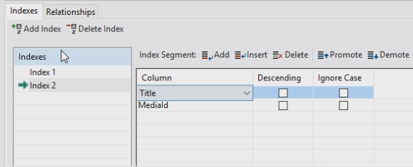 - The second Index will be Title, that way it can be sorted on "Title" and "MediaId". This will make it unique.