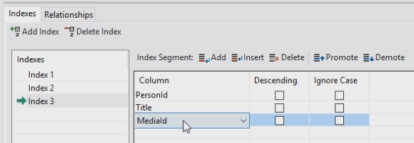 - The third index will contain PersonId, Title and MediaId. This will help when you want to see the media items of a specific person.This index will also help DataFlex find records faster.