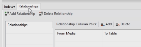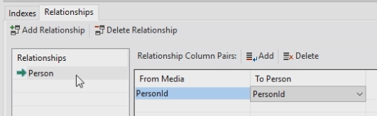 - Now create a relation between the Person and Media table. Go to the Relationships tab.