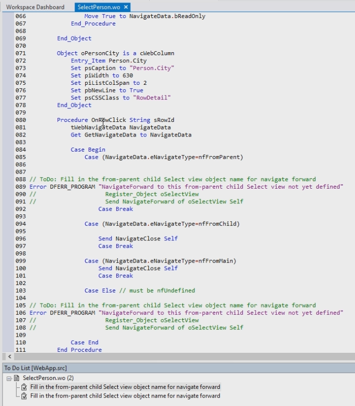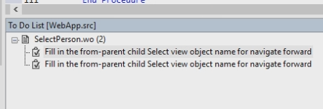 - Remember that in the wizard we selected both as the navigation options for this select view. Open the To-Do items in the Studio. <