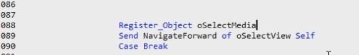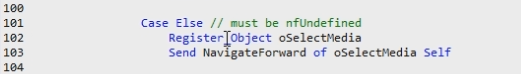- Enter: Register_Object oSelectMedia. We have to register this object, because otherwise we would create a circular include statement.