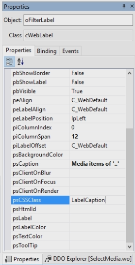- Change the psCaption to Media items of ‘…’ We will make those dots dynamic later on.
