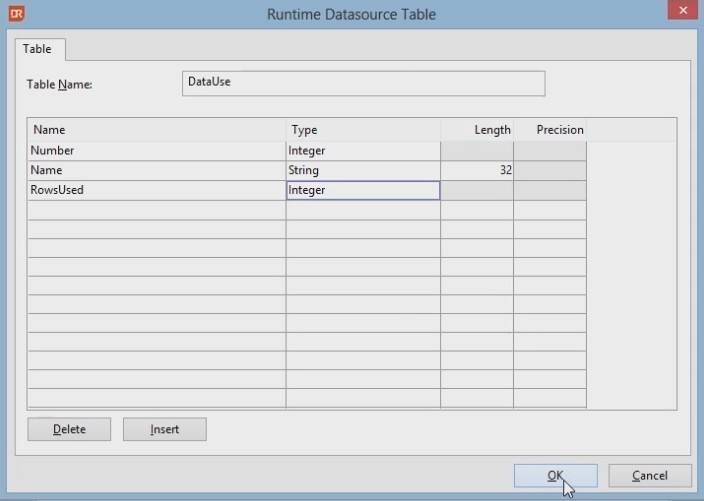 After closing the dialogue, the newly created RDS table structure, needs to be added to the report.
