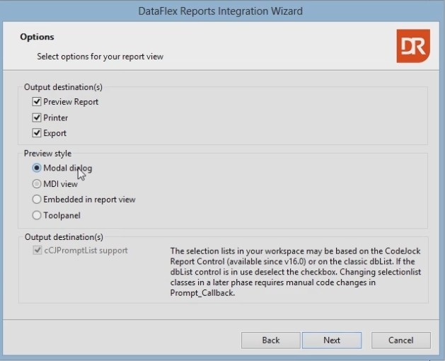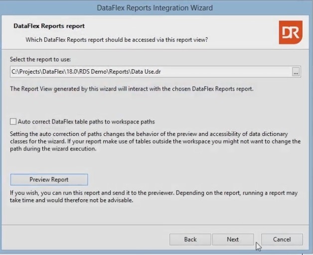 The DataFlex Reports integration wizard helps to get started with the integration.