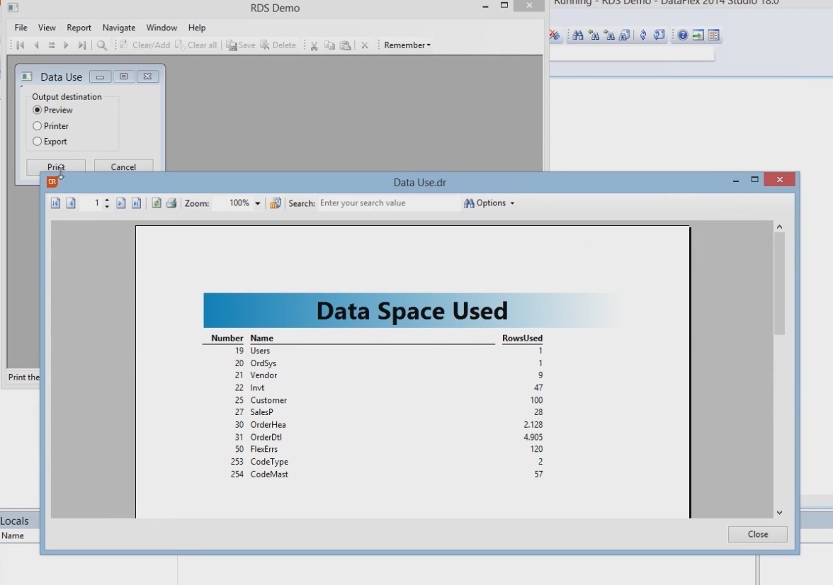 Save the report in the RDS demo workspace and switch over to the DataFlex studio.