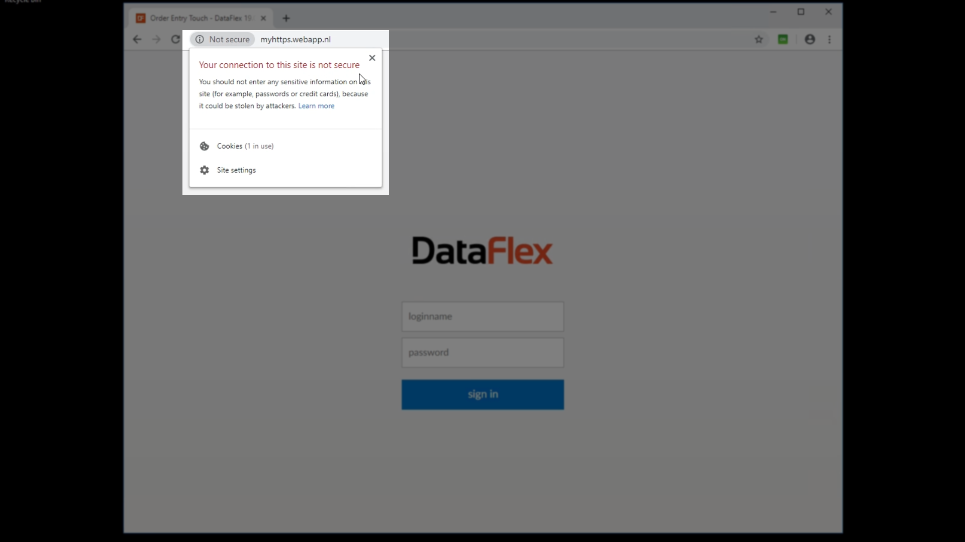 Revisiting the web application in the browser now shows that it is redirected to the secure web application.