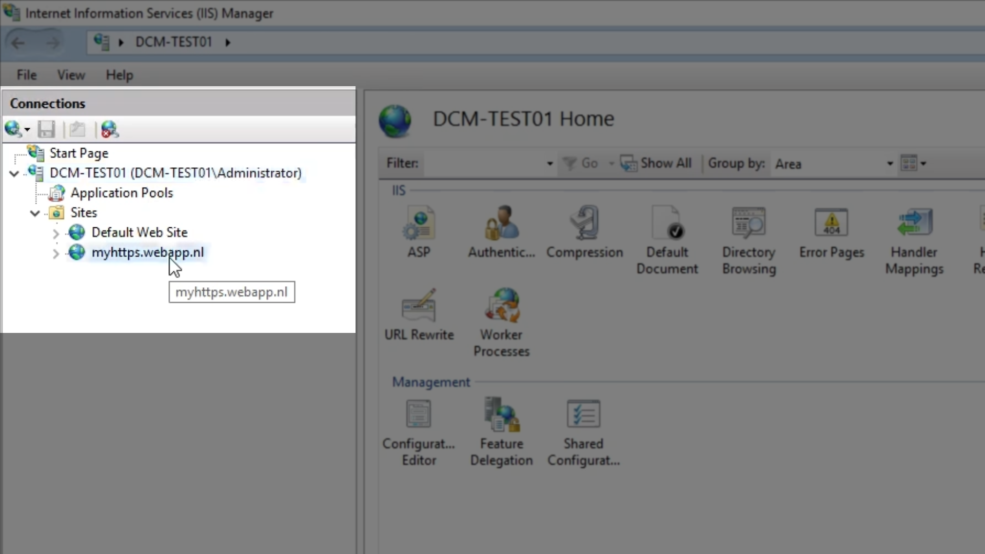 Expand the server node and then ‘Sites’ and select the web application that needs to be redirected