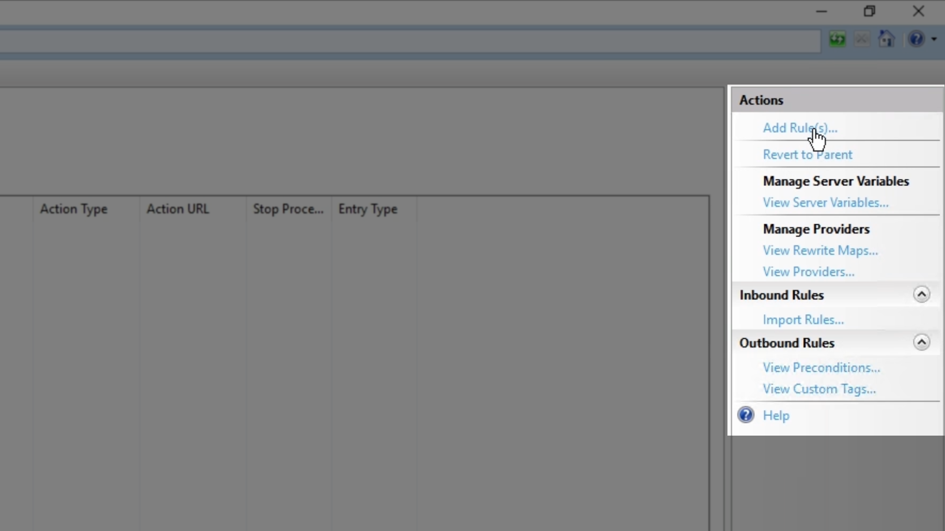From ‘Actions’ panel on the right, click on ‘Add Rule(s)’