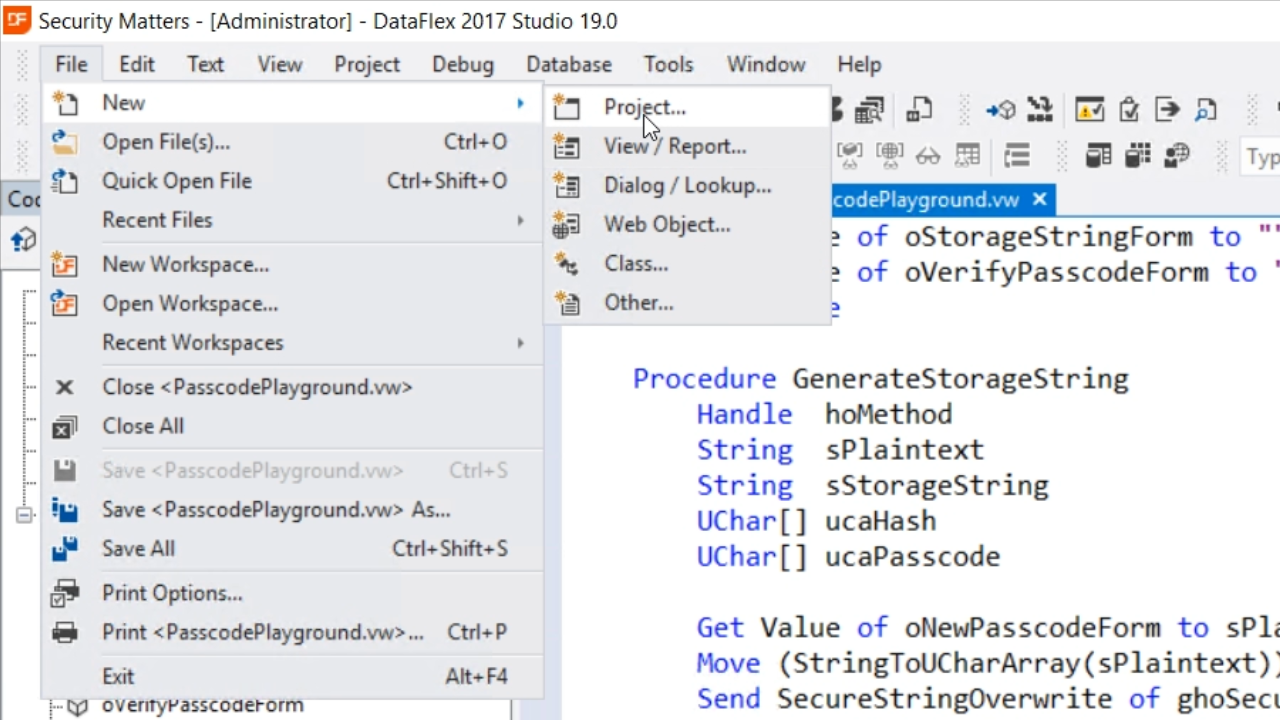 To help developers determine the number of operations (piOpsLimit) and the amount of memory (piMemLimit) to require a project template has been developed within DataFlex. To use it, navigate to FILE > NEW > PROJECT from the top menu.