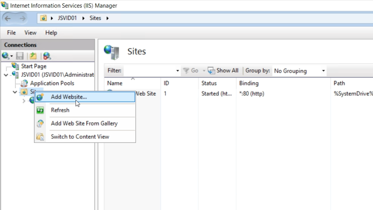 - Open IIS Manager