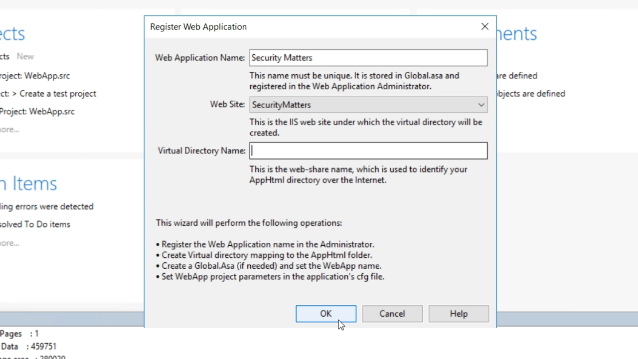 - The ‘Virtual Directory Name’ field can be left blank