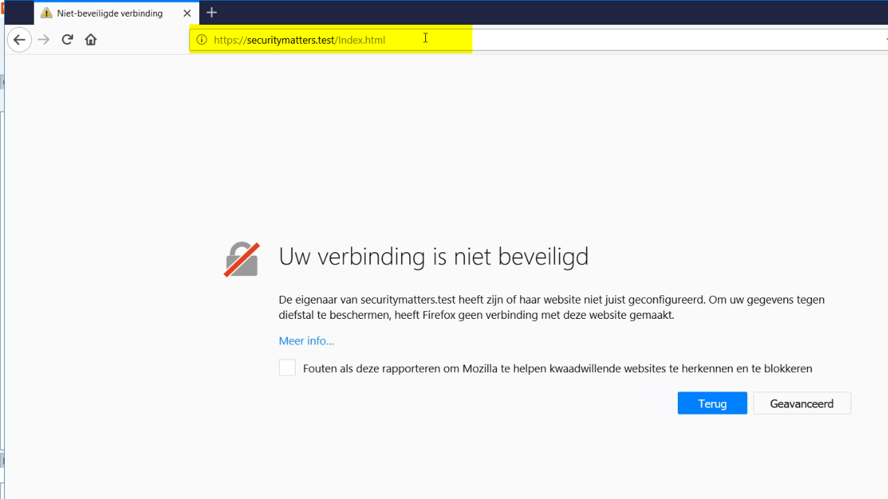 - If HTTPS is explicitly added to the front of the URL, a warning page appears stating that the site is not secure. This is a result of having a self-assigned certificate.