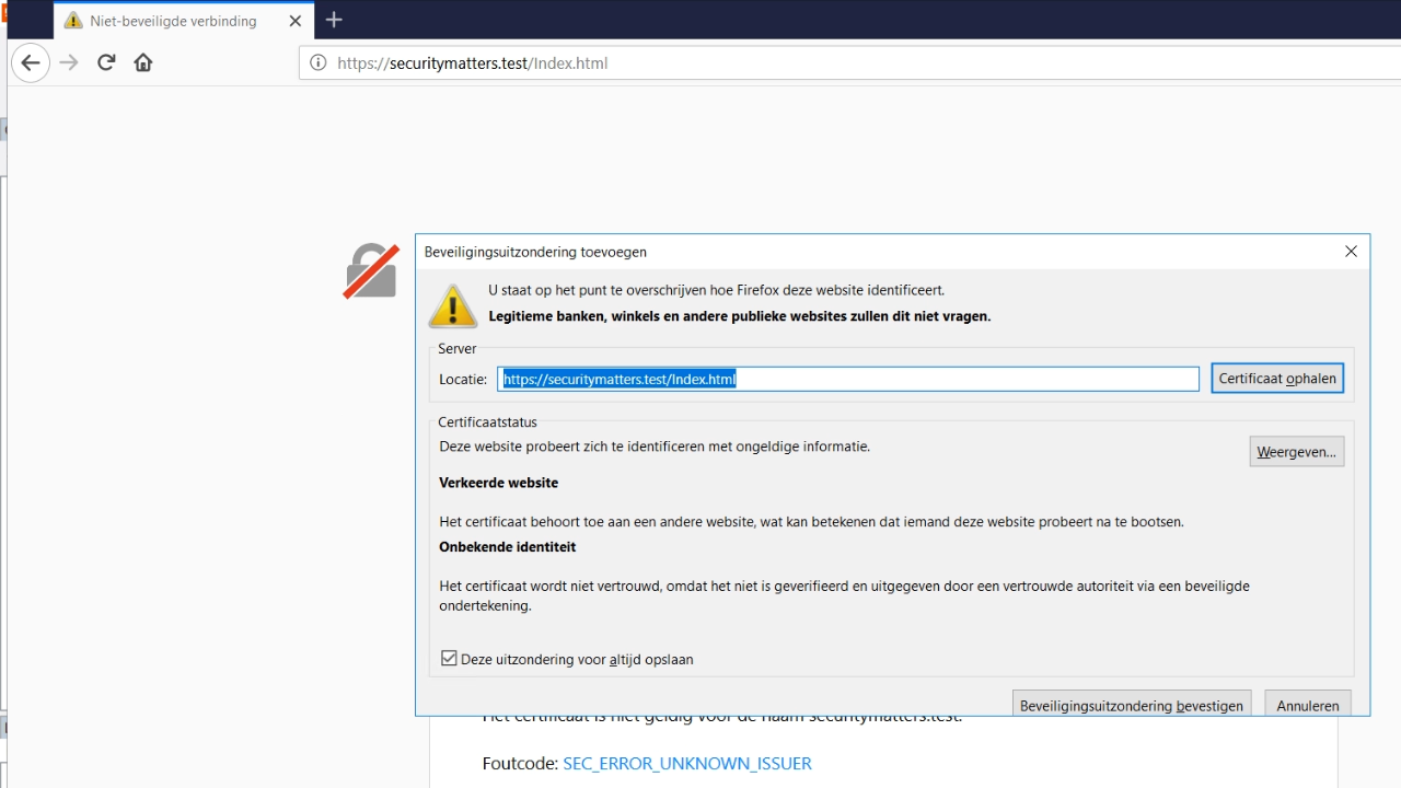 - Depending on the browser, the site can be added as a security exception.