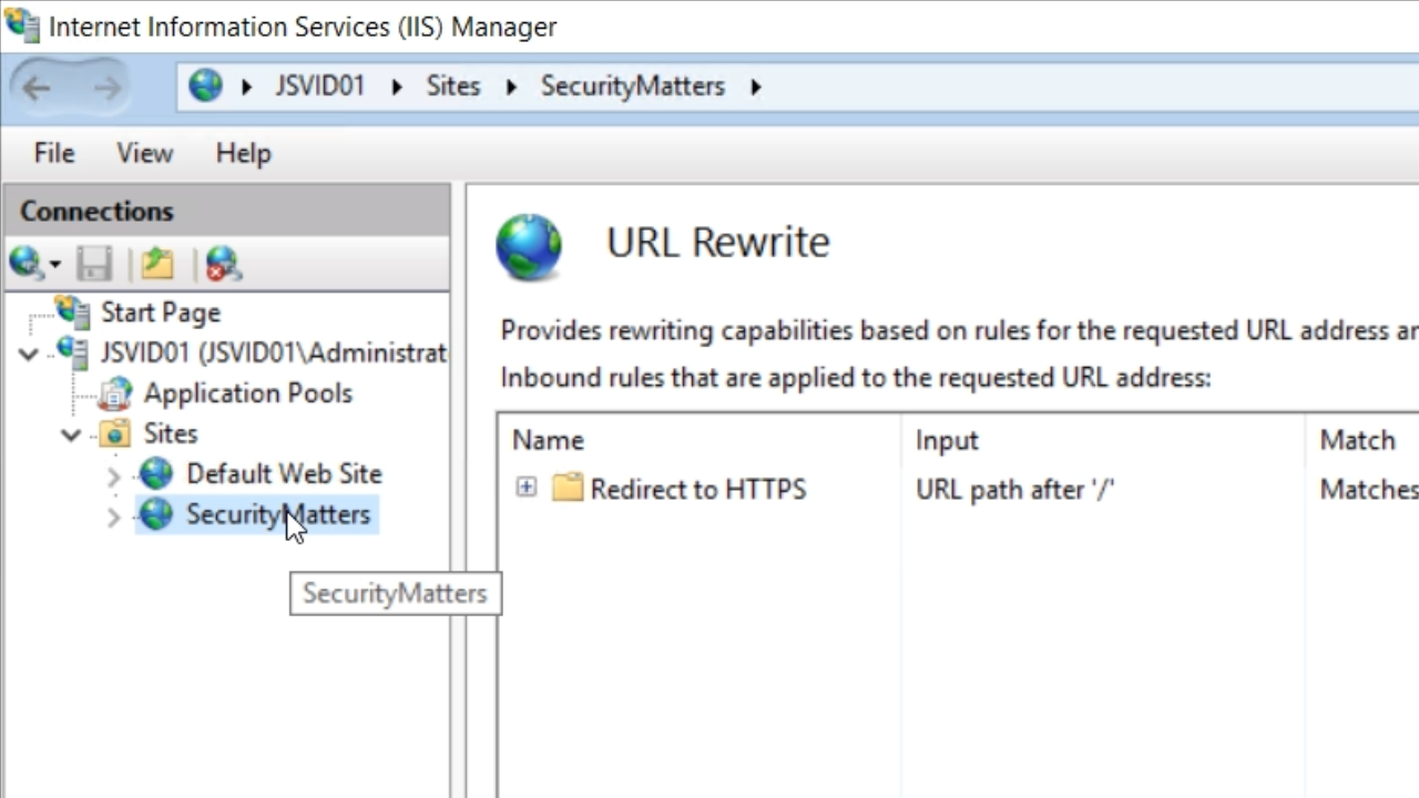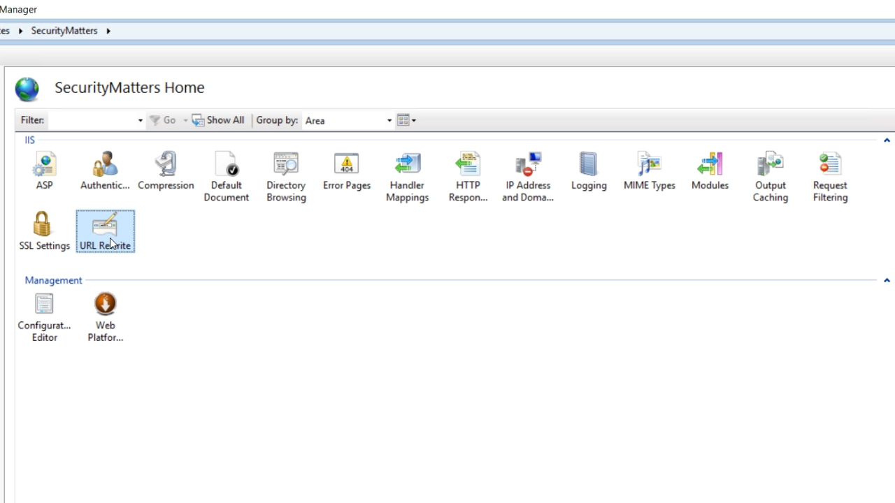 - From IIS Manager, select ‘URL Rewrite’ from the IIS section in the center