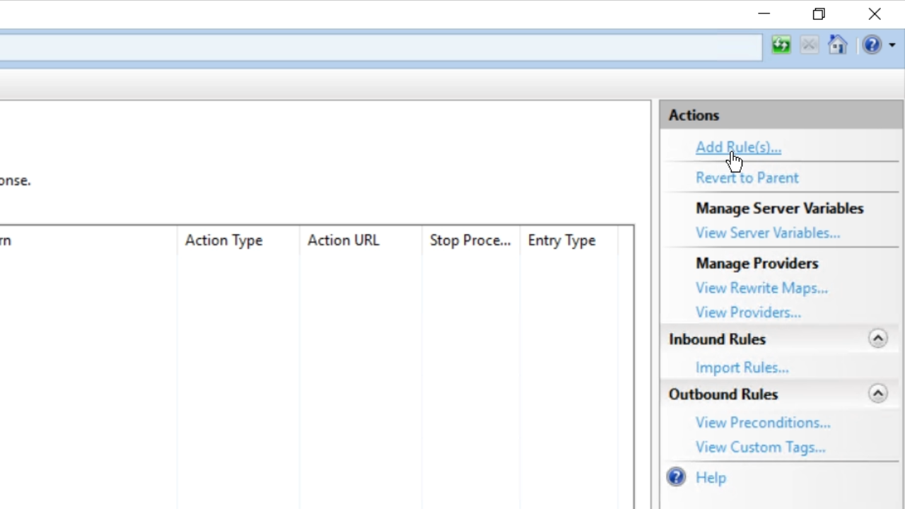 - Then select ‘Add Rule(s)’ from the ‘Actions’ panel on the right.