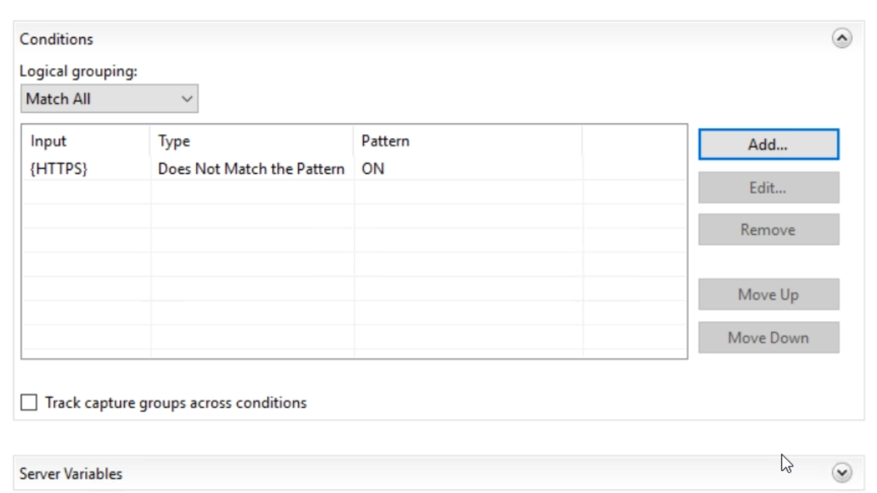 - {HTTPS} is entered as the ‘Condition input’