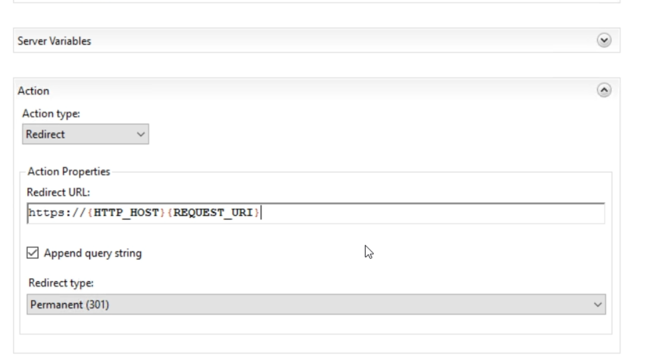 - In the ‘Redirect URL’ field enter https://{HTTP_HOST} {REQUEST_URI}