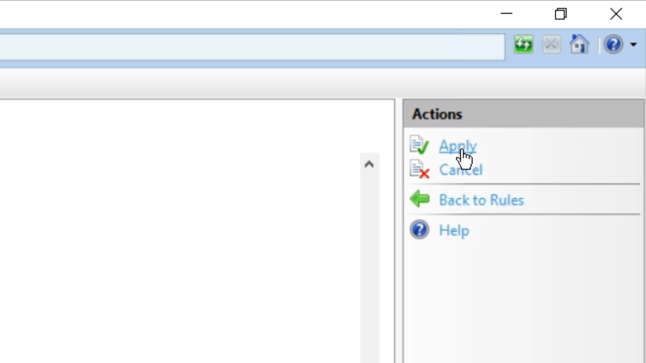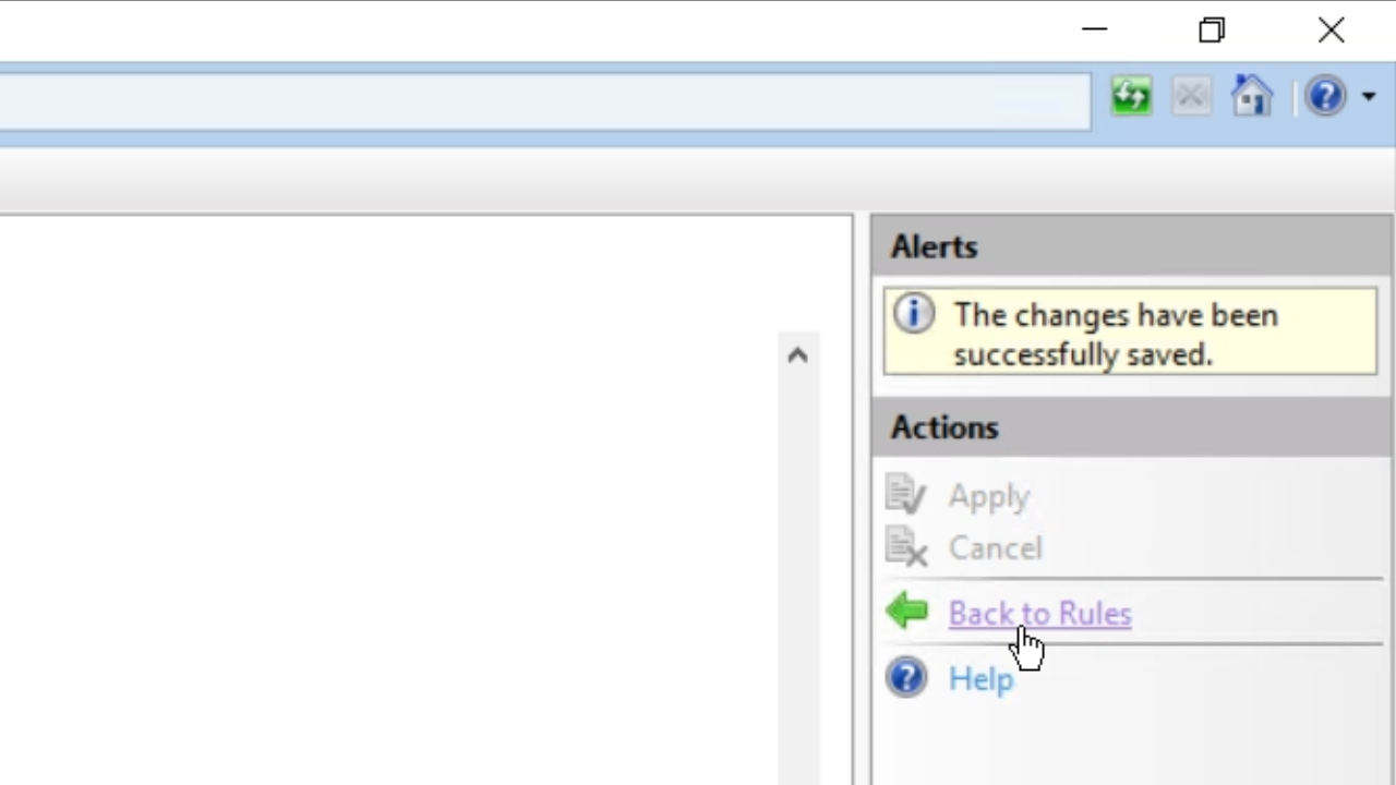 - Press APPLY and then ‘Back to rules’ in the ‘Actions’ panel on the right