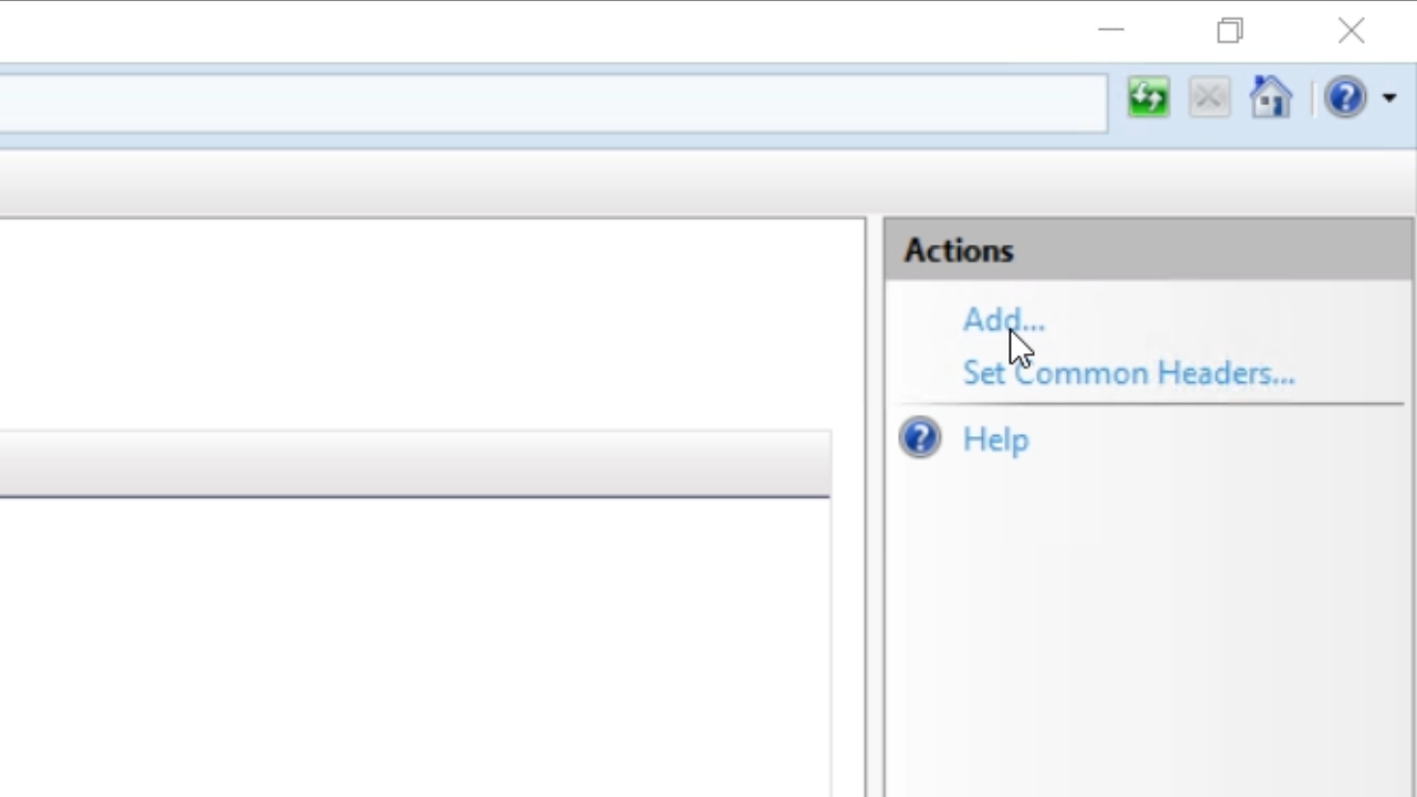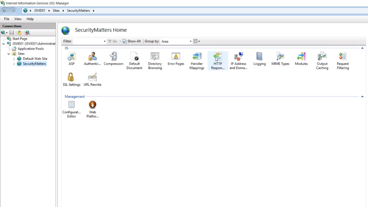 - Select ‘HTTP Response Headers’ from the ‘IIS’ section in the center panel