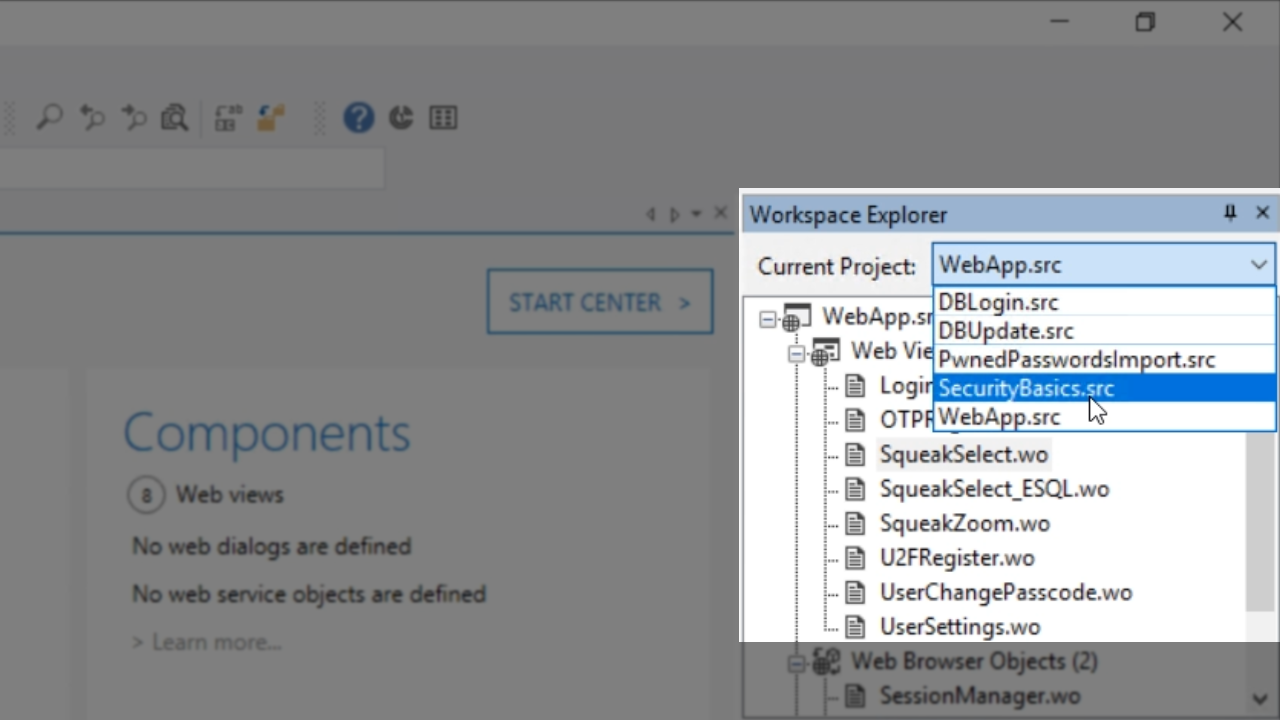 - For this example, a simple Windows project called SecurityBasics.src will be used.