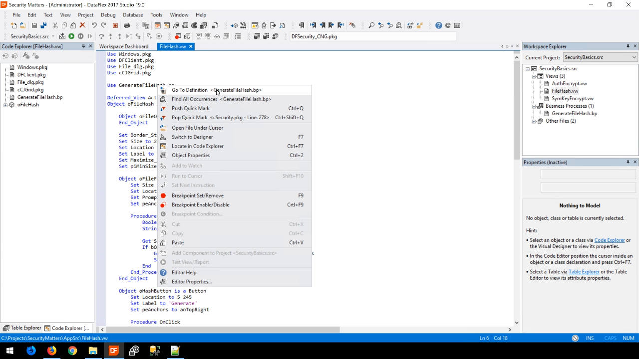 - From the code view of FileHash.vw, right click on GenerateFileHash.bp, and select ‘Go to definition.’