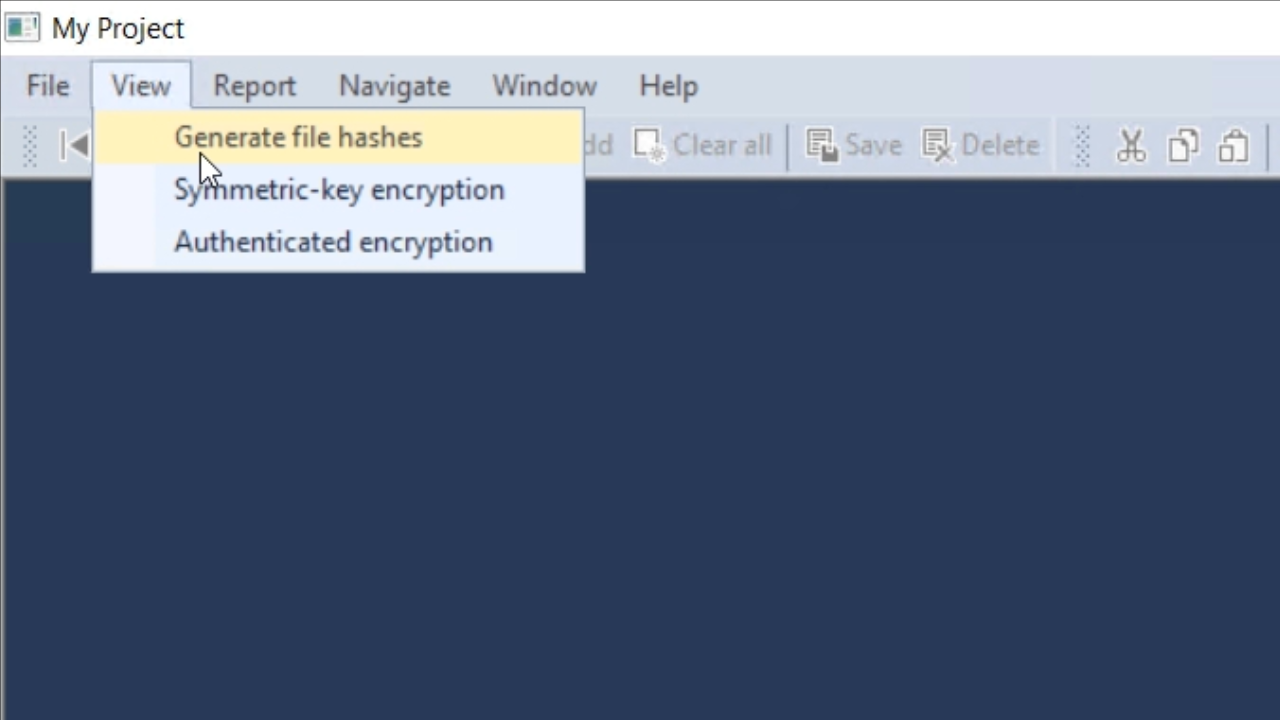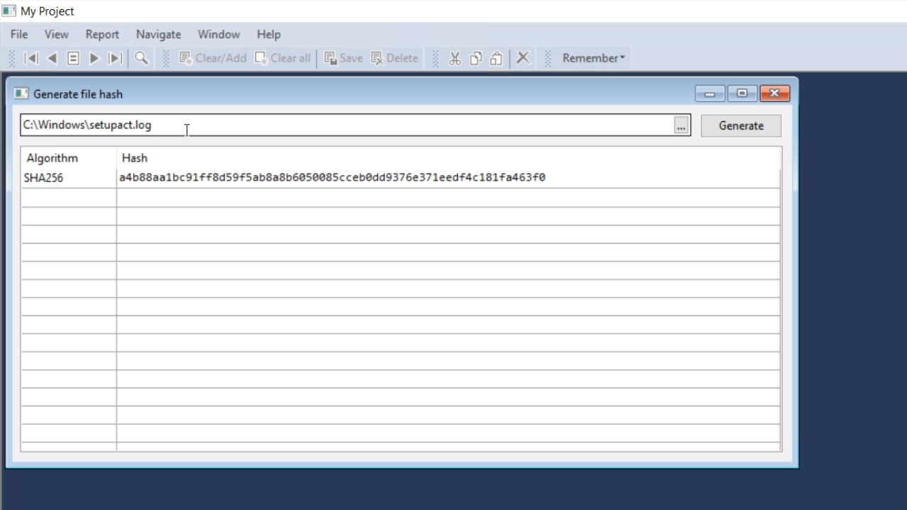 - Press F5 to run the code. From the application screen, select VIEW from the top menu and then GENERATE FILE HASHES.