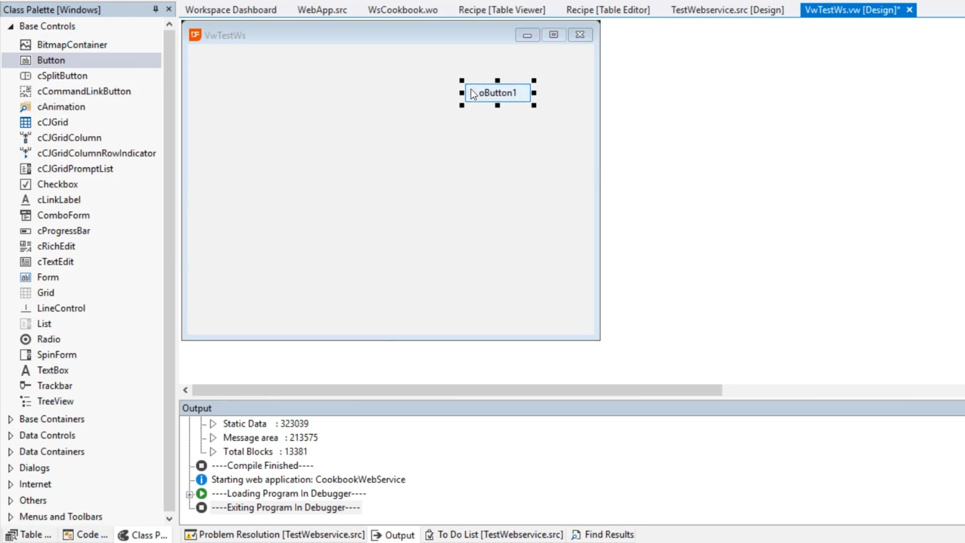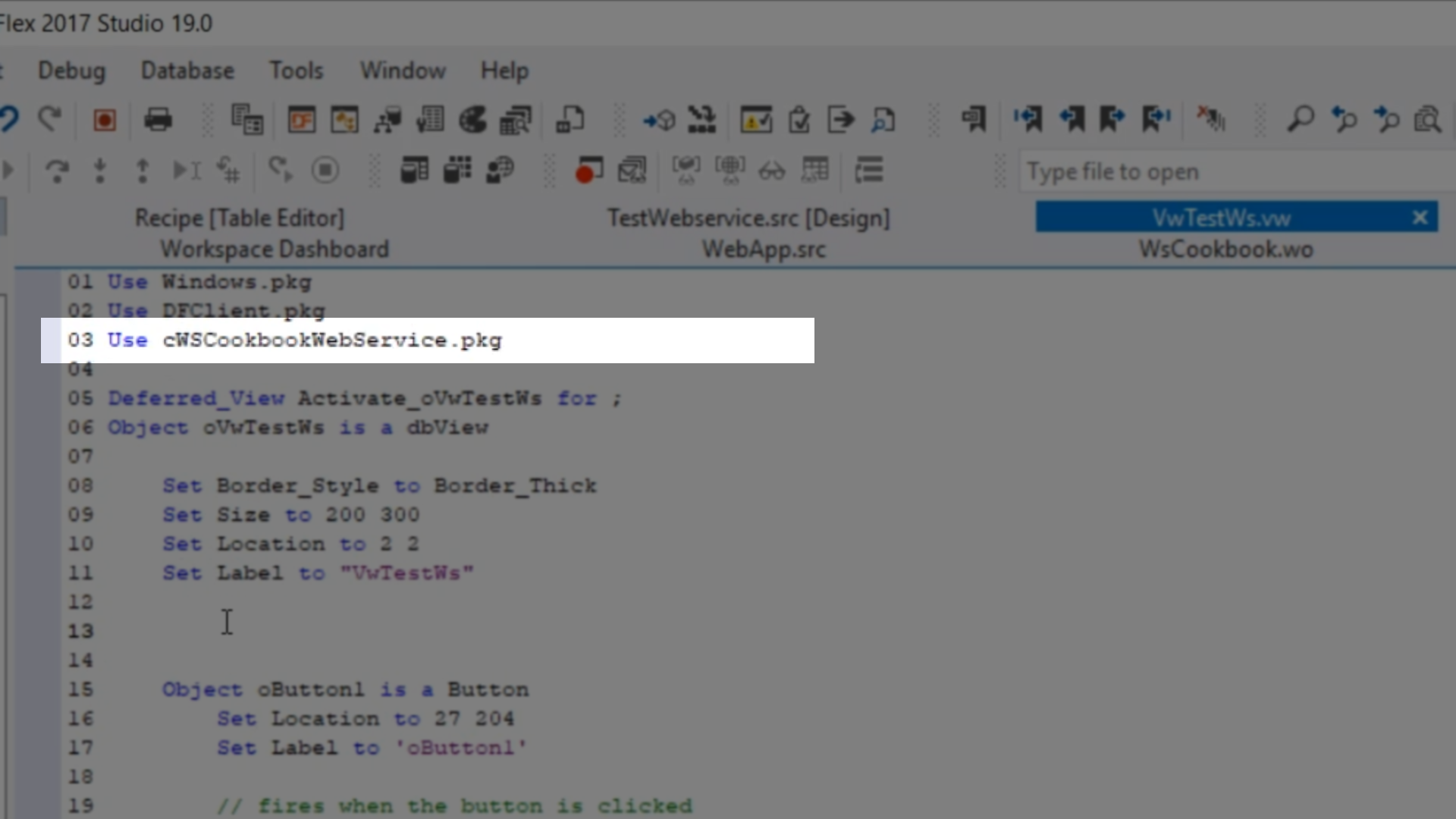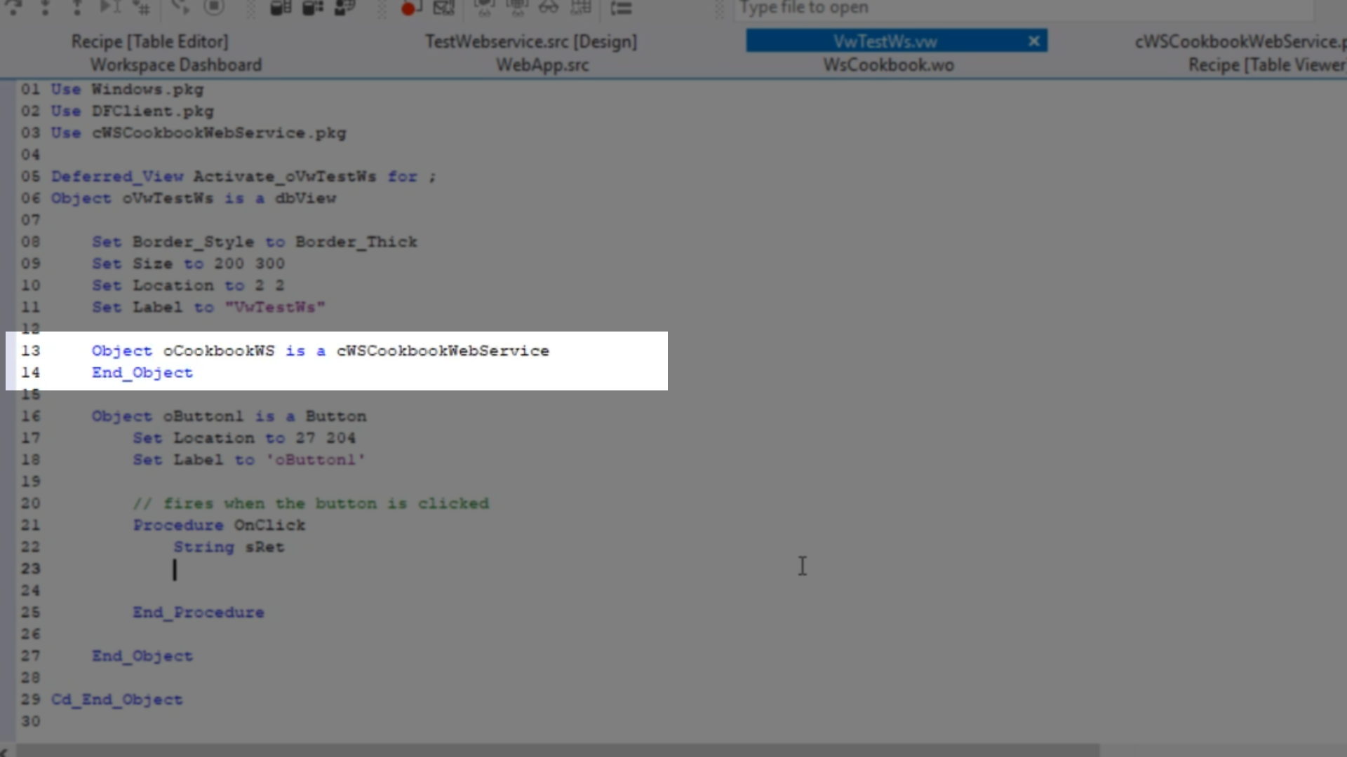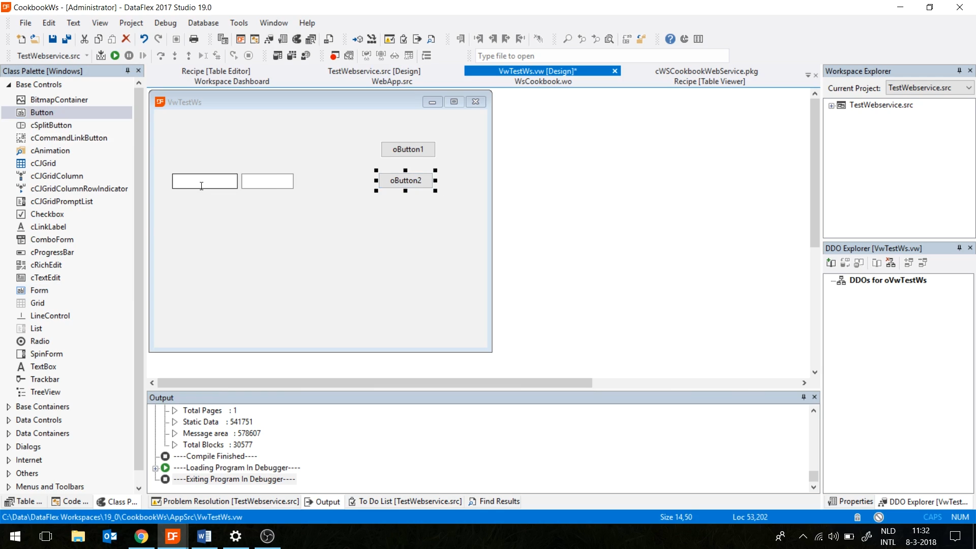 - Return to the DataFlex Studio, and open VwTestWs.vw [Design]