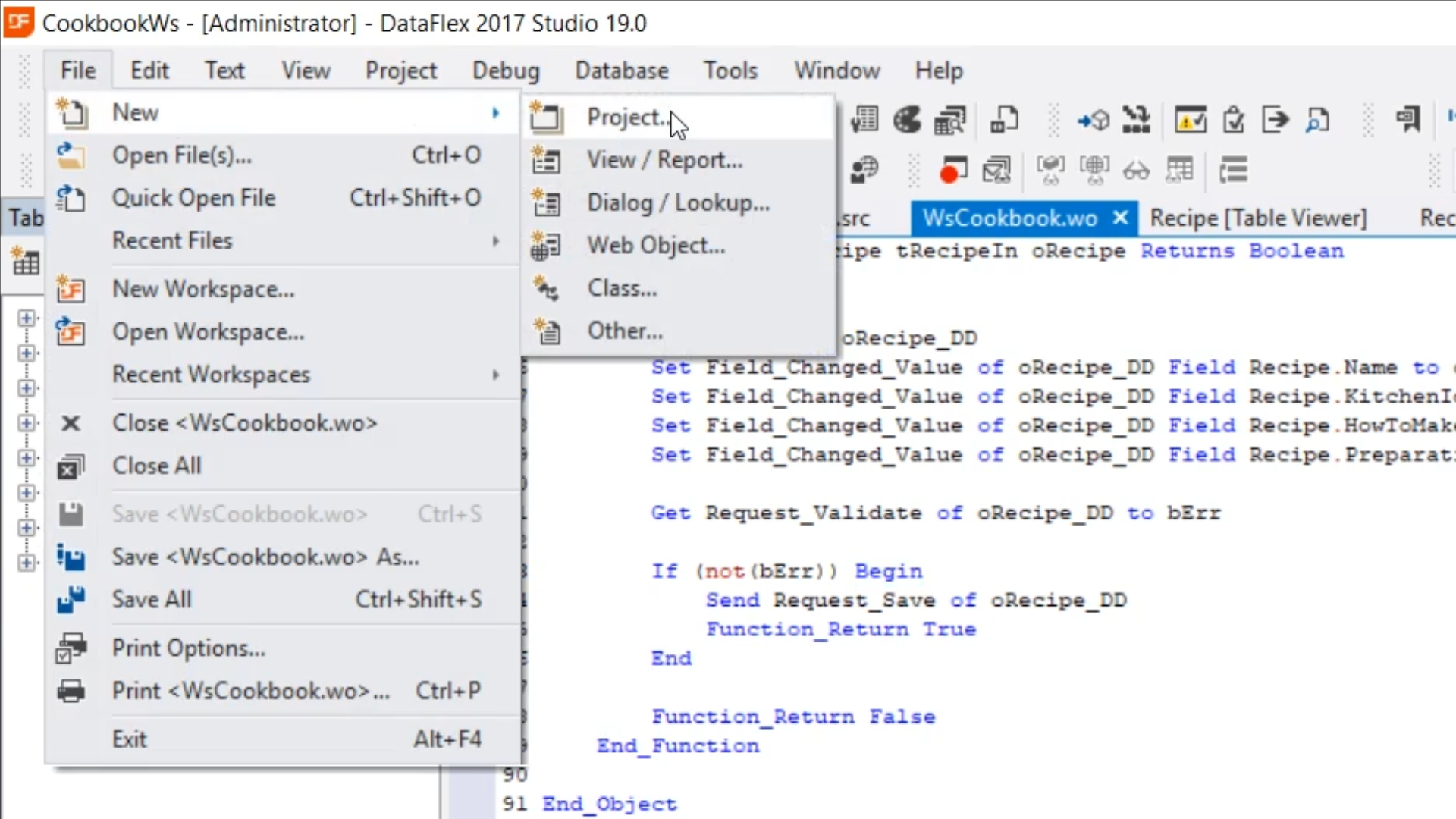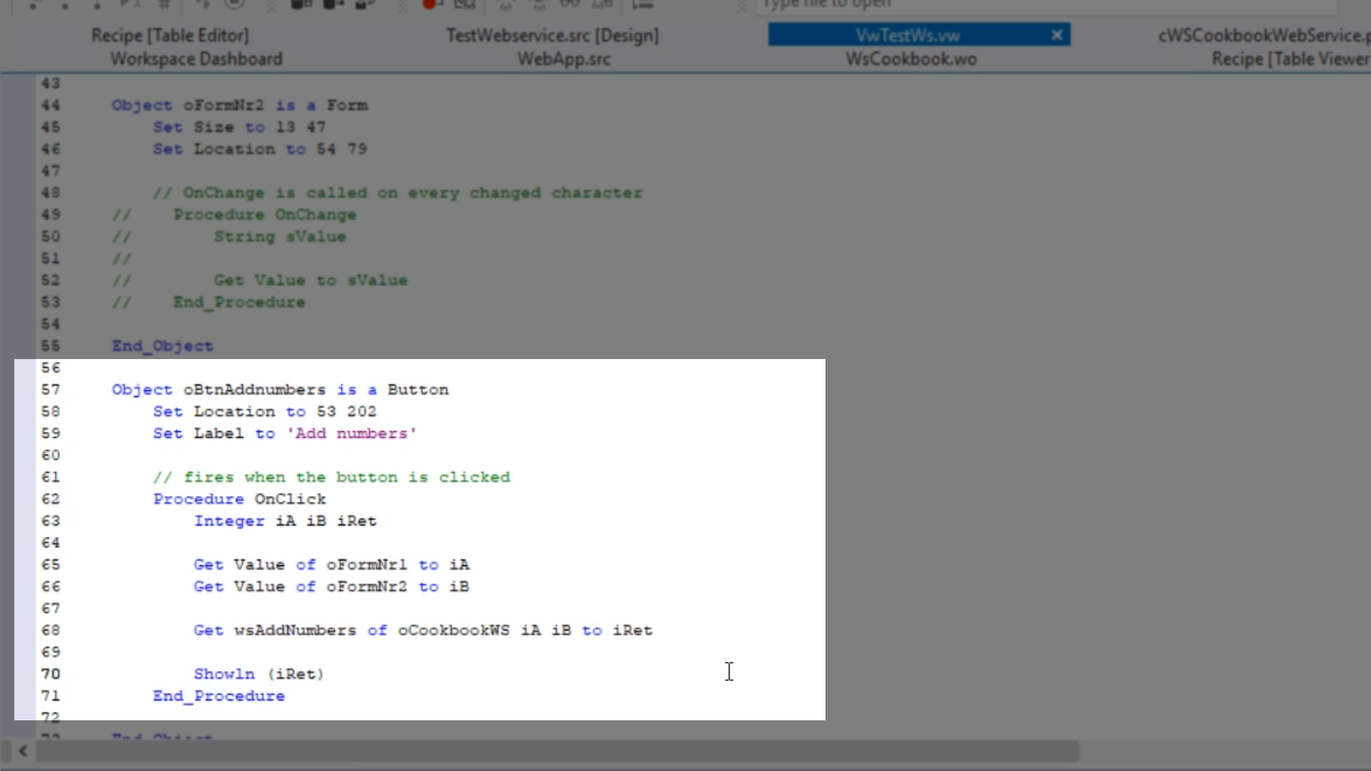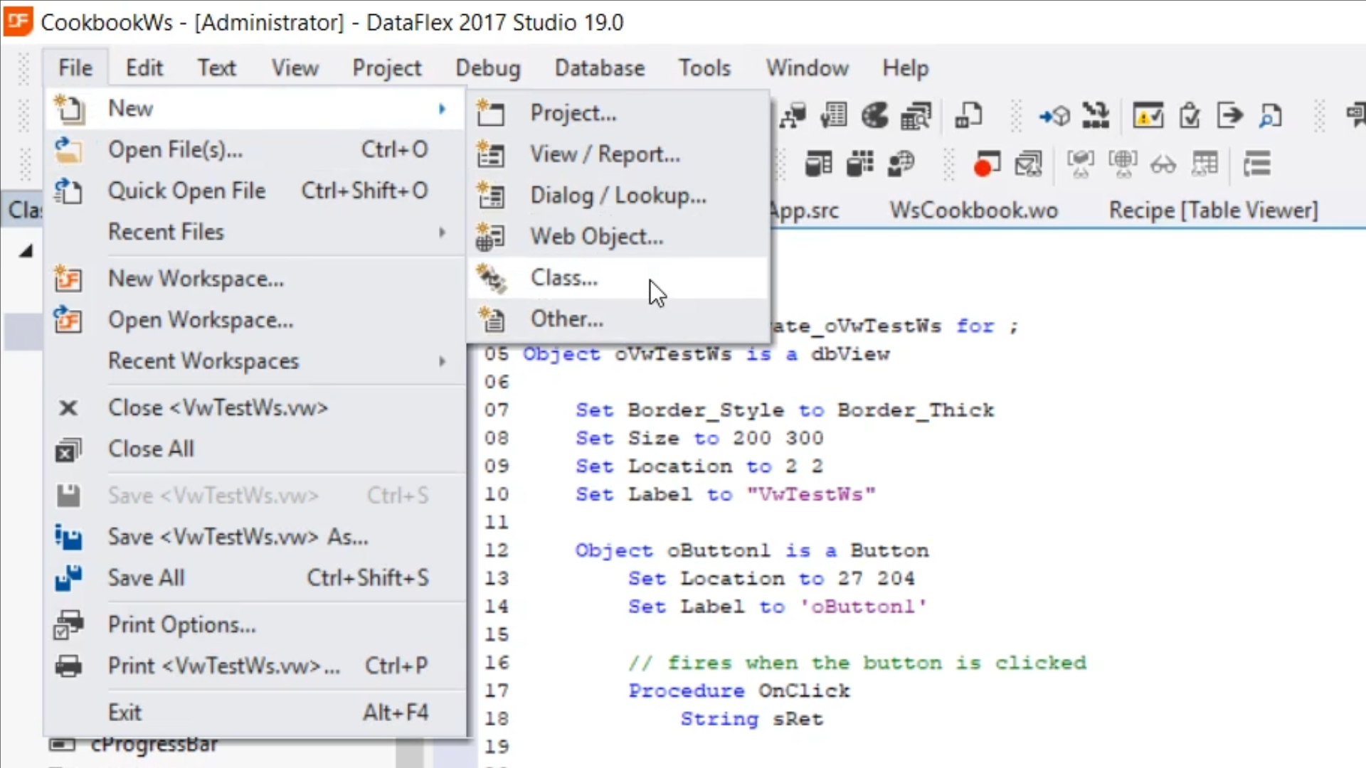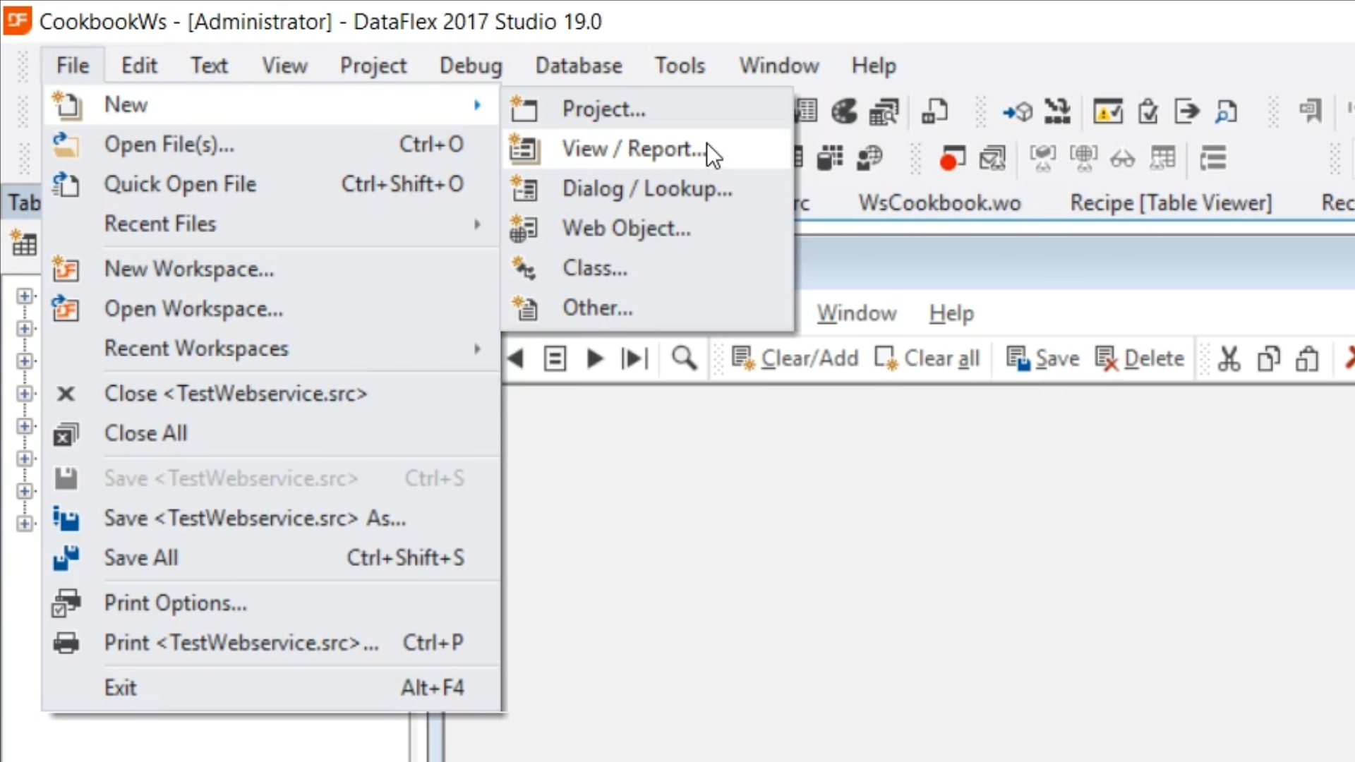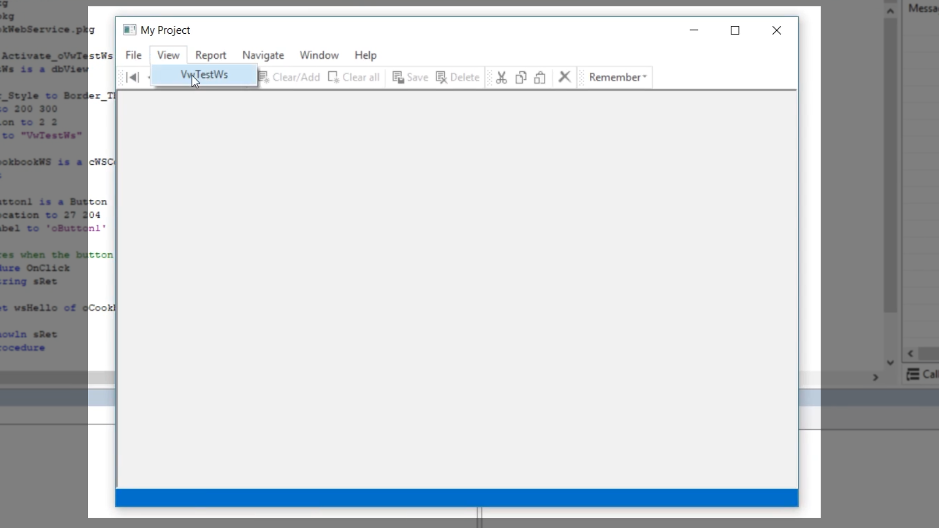 - Return to the DataFlex Studio, and open VwTestWs.vw [Design]