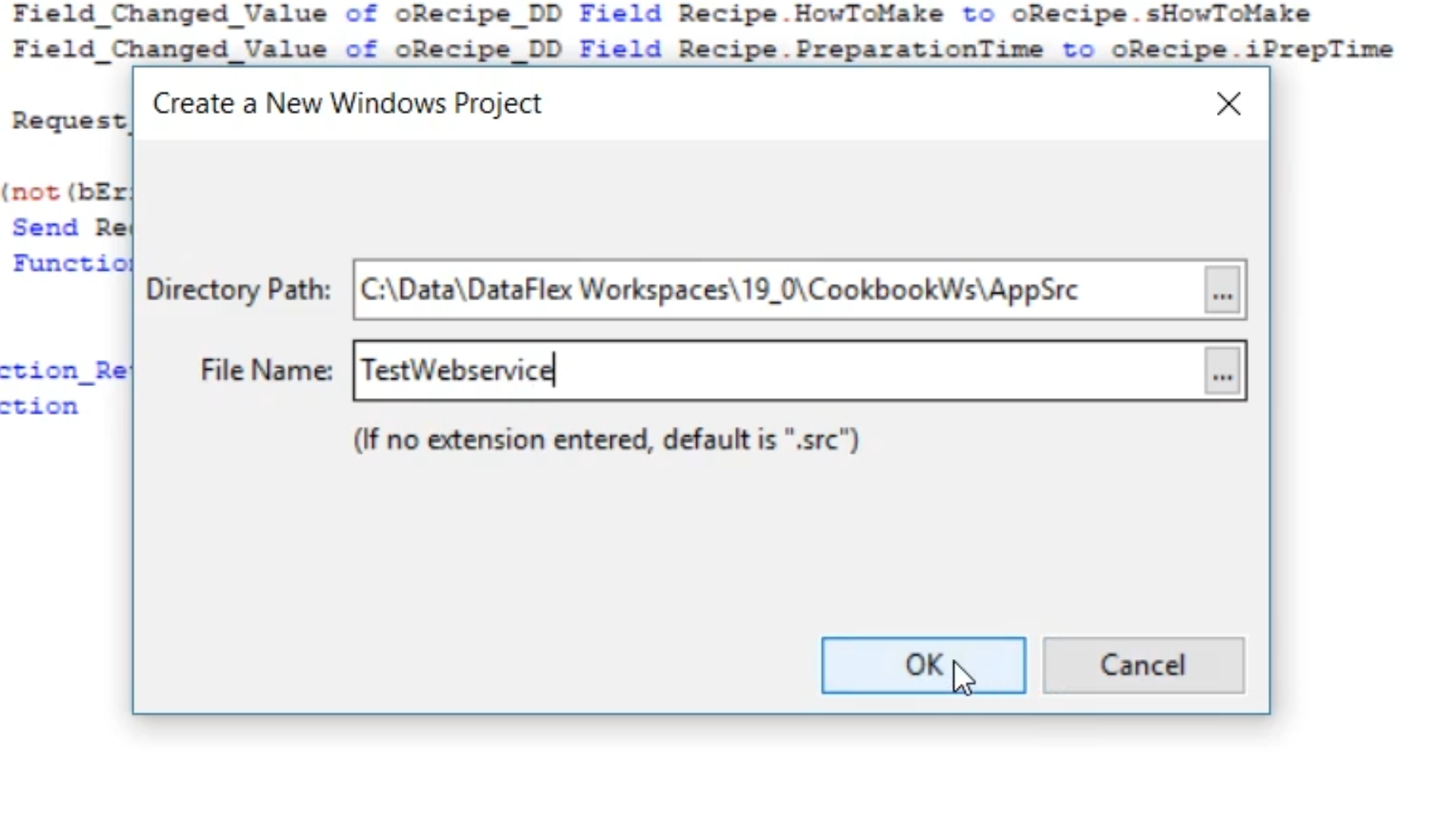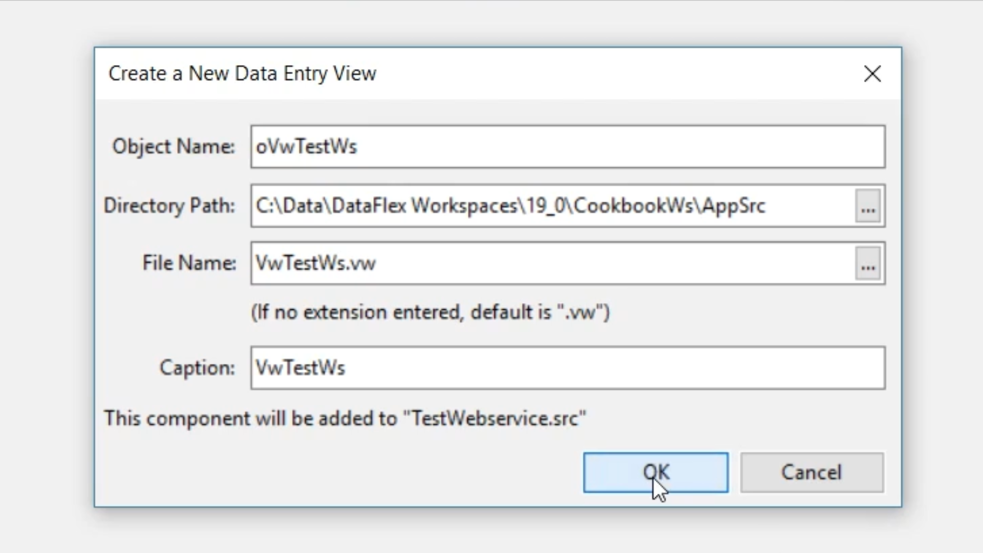 - Add “TestWebservice” as the file name. Select OK.