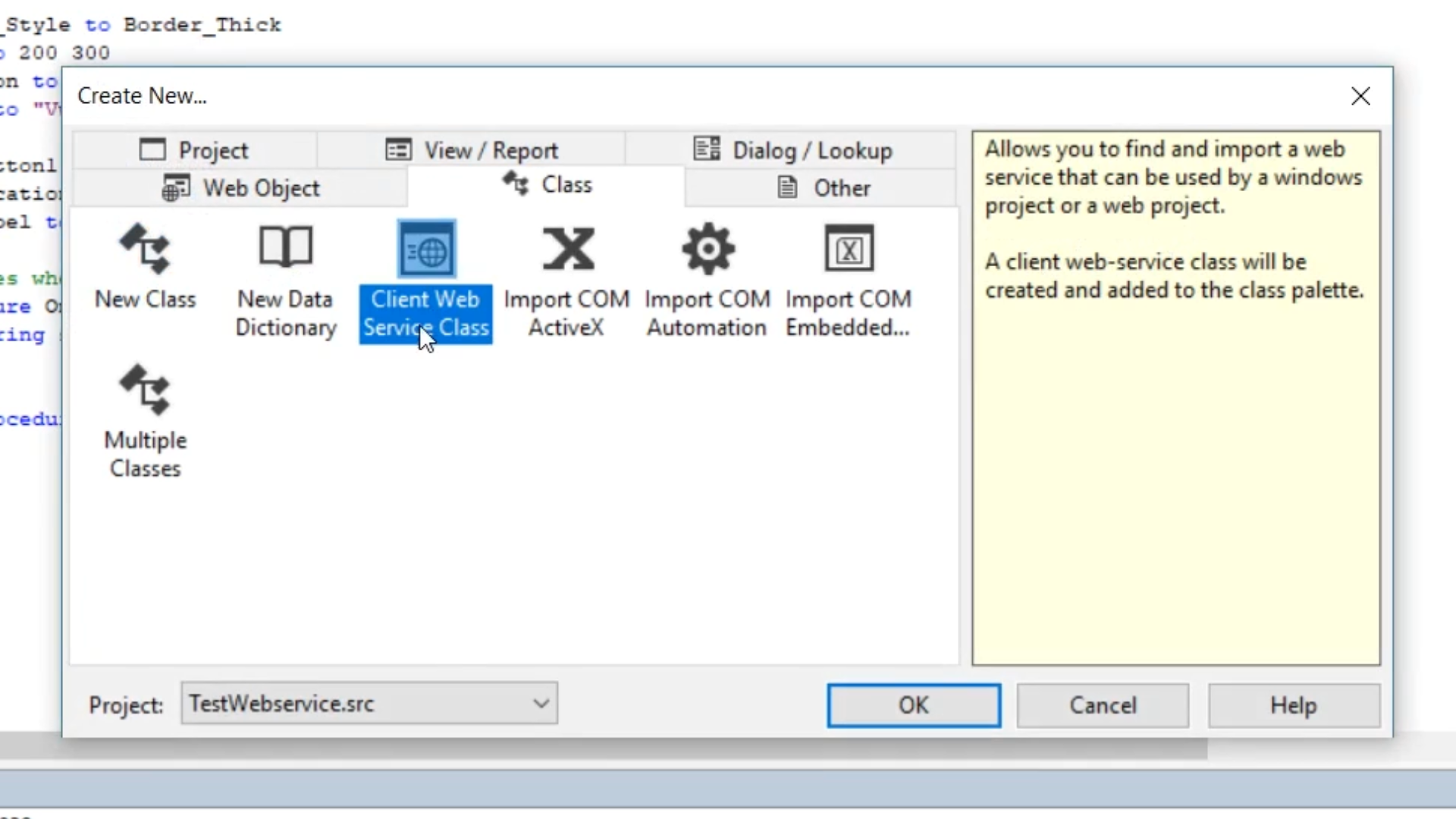 - Select CLIENT WEB SERVICE CLASS, and select OK.