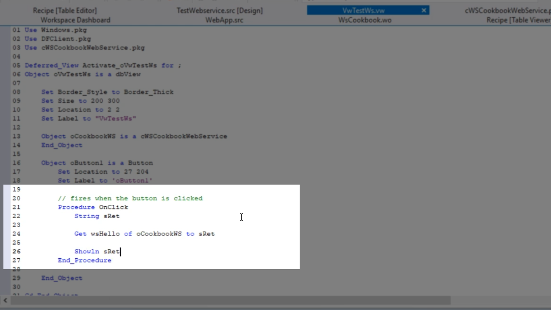 - That web service line object can now be used in the onclick procedure.