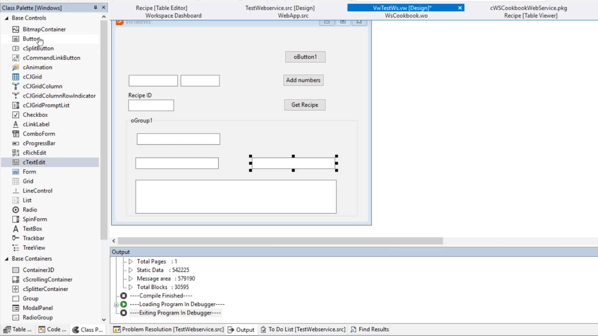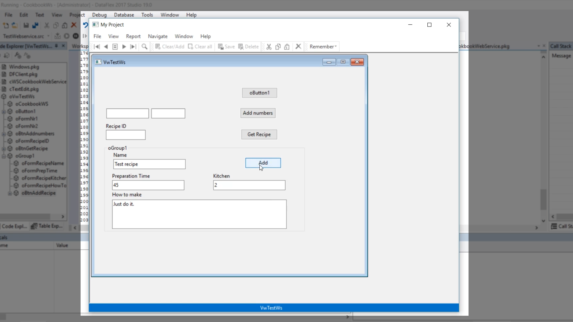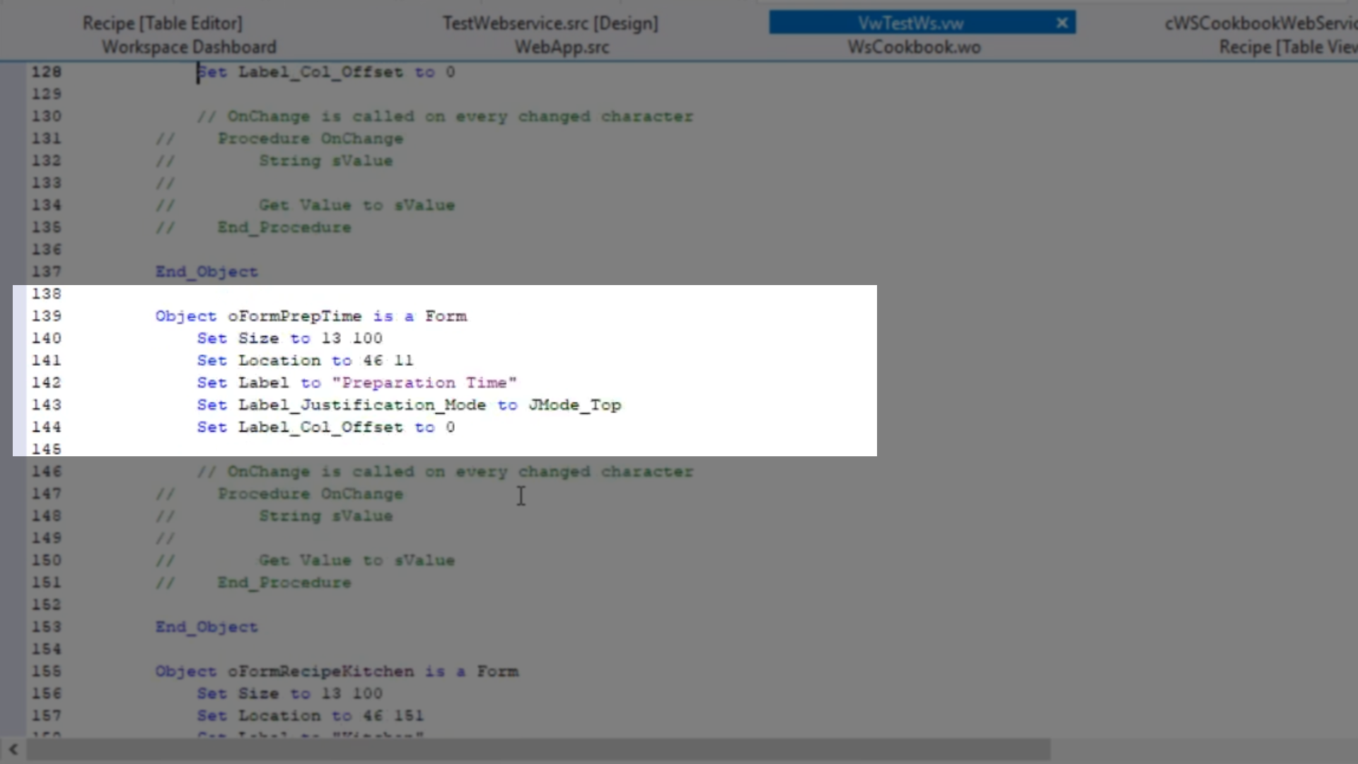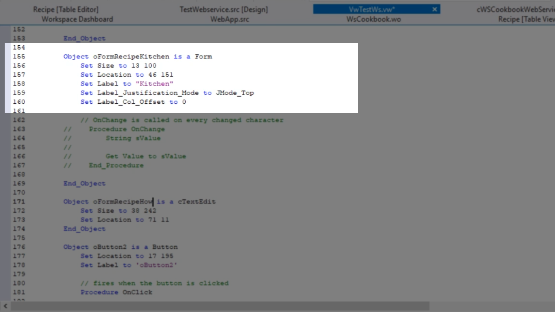 - Returning to the DataFlex Studio, select the ‘cWSCookbookWebService.pkg’ tab.