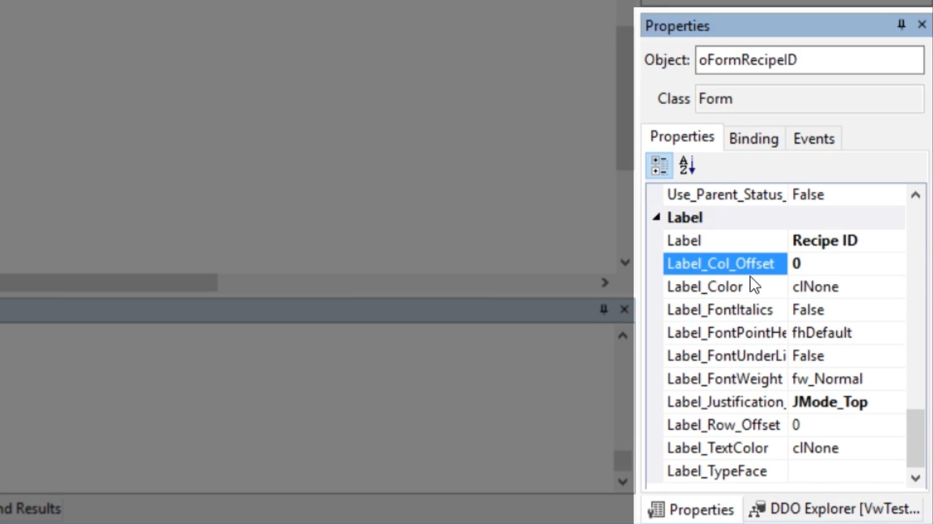 - In the code (VwTestWs.vw), change the name, label, and the label’s justification of the first field…