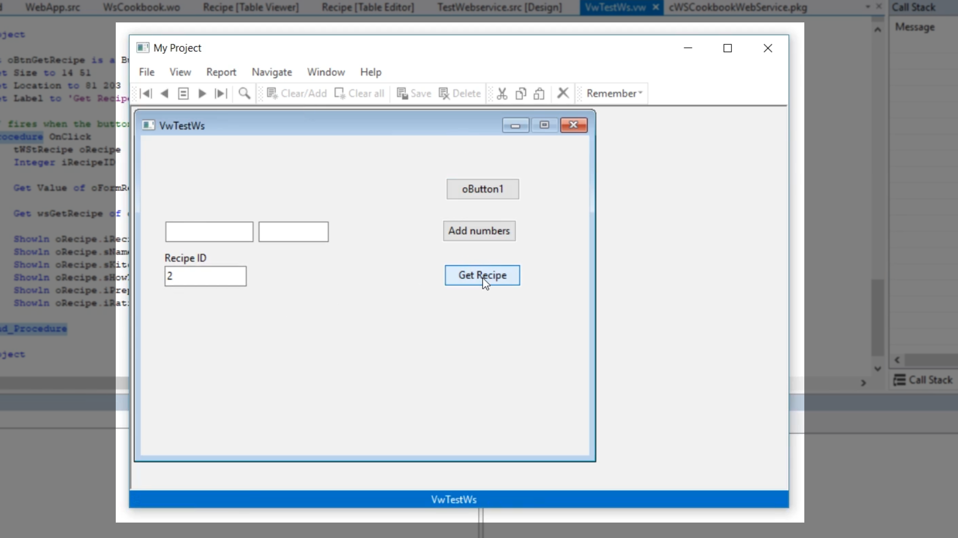 Get wsGetRecipe of oCookbookWS iRecipeID to oRecipe