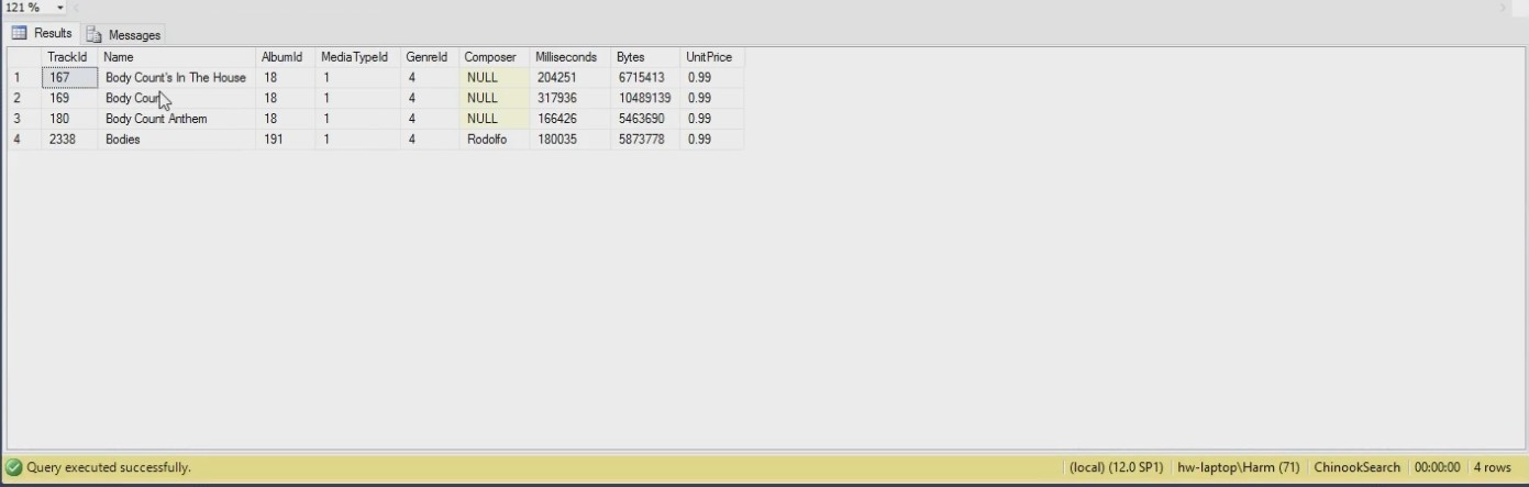 In the results you can see that only the tracks that have ‘Body Count’ in the name show up.